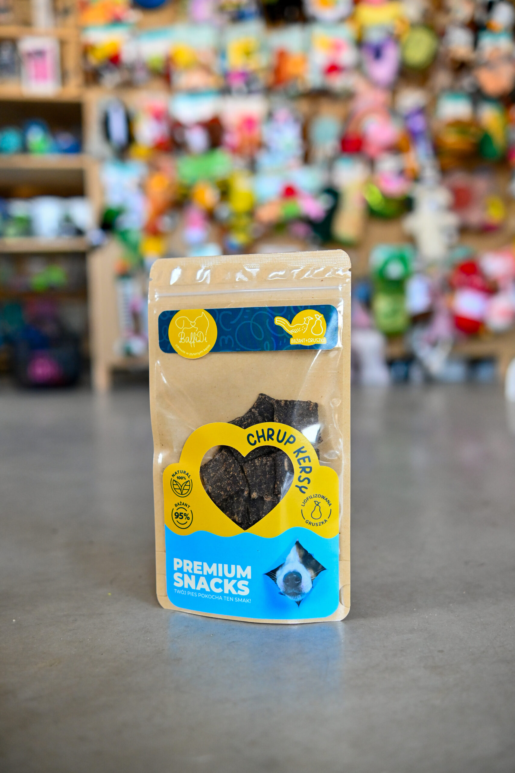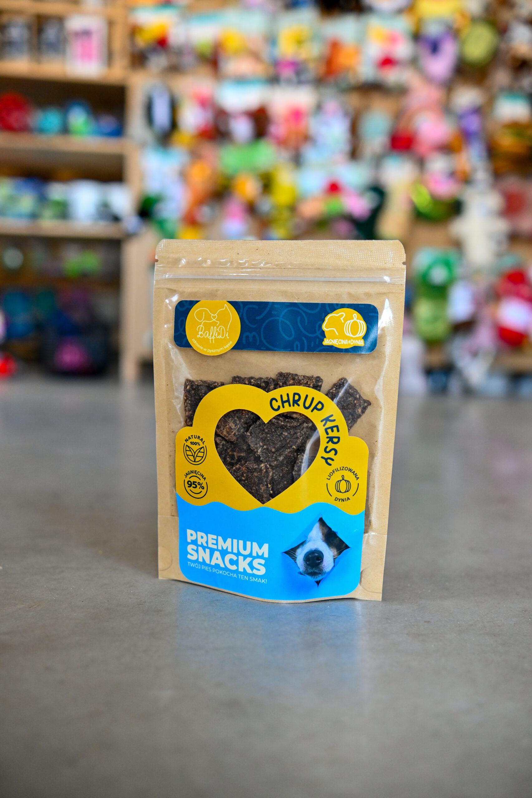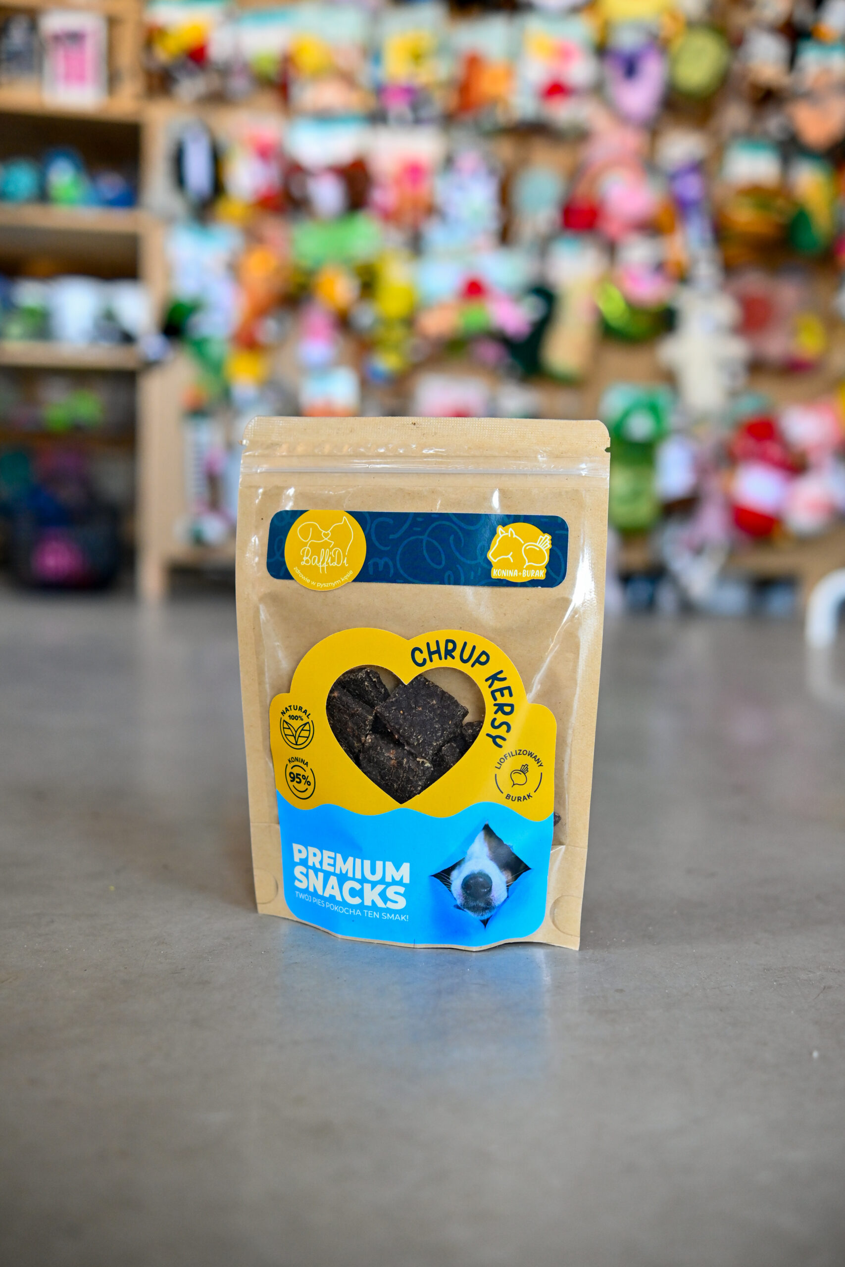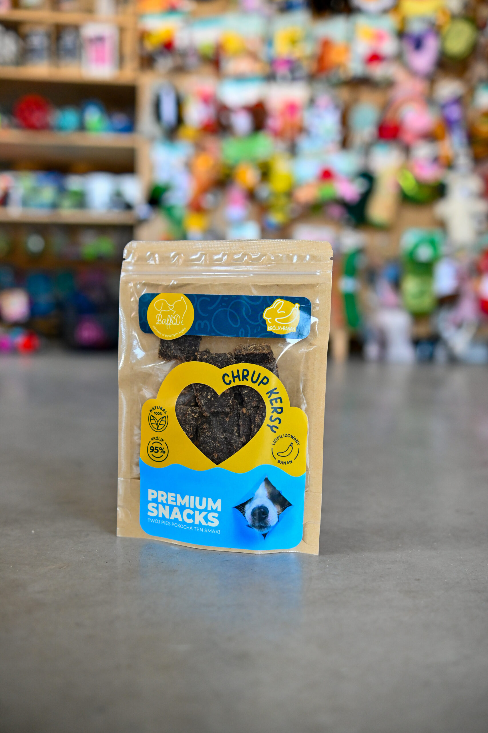 ChrupKersy – Królik z Liofilizowanym Bananem Naturalne mięsne krakersy 95% królika + 5% liofilizowanego banana | Lekkość, zdrowie i super smak w jednej przekąsce   ChrupKersy od BaffiDi to absolutna nowość na rynku – pierwsze naturalne psie krakersy, w których połączyliśmy 95% chudego mięsa królika z 5% liofilizowanego banana – składnika uwielbianego przez psy za naturalną słodycz i wysoką wartość odżywczą. Ta unikatowa fuzja smaków łączy w sobie delikatność mięsa z energią i witaminami owocu, tworząc idealny, naturalny przysmak dla psów wrażliwych, alergików i czworonogów potrzebujących wysokiej jakości białka. Dzięki chrupiącej formie mięsnych krakersów, ChrupKersy są wygodne do podawania, idealne do treningu, nagradzania i codziennych rytuałów smakowych.   Dlaczego ChrupKersy są wyjątkowe?   ✔ 95% mięsa królika – lekkostrawne, hipoalergiczne białko premium Mięso królika to jedno z najdelikatniejszych i najbezpieczniejszych białek dla psów:
