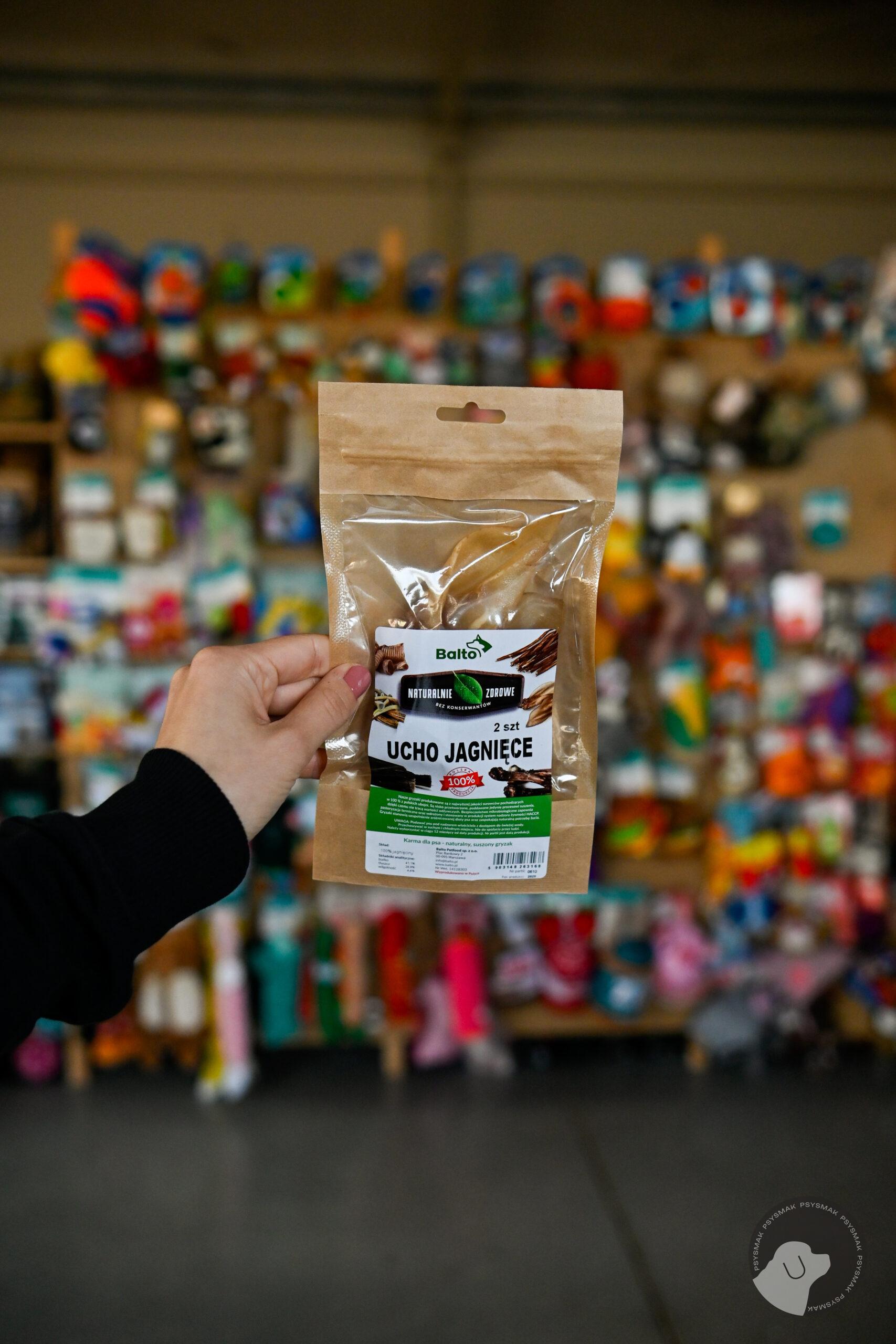 Ucho jagnięce to delikatny, hipoalergiczny, mało brudzący i lekkostrawny gryzak niedużej wielkości o mało intensywnym zapachu. Dzięki dużej zawartości chrząstki i kolagenu przysmak wzmacnia układ mięśniowo-stawowy psa, pozytywnie wpływa na układ trawienny i krwionośny, a także poprawia stan sierści i pazurów. Doskonale sprawdzi się jako nagroda lub motywator podczas spacerów i treningu. Szczególnie polecane dla małych psów i szczeniaków. Produkty z baraniny znakomicie nadają się dla psów z alergiami i nietolerancjami pokarmowymi.