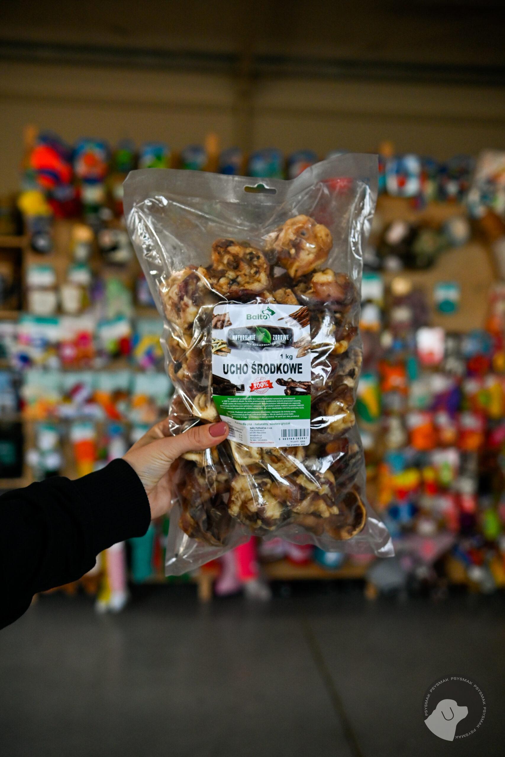 Ucho środkowe wieprzowe to niewielkich rozmiarów i nieregularnego kształtu kruchy gryzak o chrzęstnej strukturze oraz intensywnym zapachu. Wysoka zawartość chrząstki, kolagenu oraz glukozaminy korzystnie wpływa na układ stawowo-mięśniowy zwłaszcza w okresie wzrostu psa. Przysmak zalecany dla wszystkich psów, zwłaszcza ras małych, szczeniąt i seniorów. Pomaga czyścić zęby z płytki nazębnej oraz poprawia kondycję dziąseł, dbając o prawidłowe uzębienie psa. Przysmak, który będzie dobrą nagrodą i motywatorem podczas spaceru czy treningu. Skład: 100% ucho środkowe Składniki analityczne:
