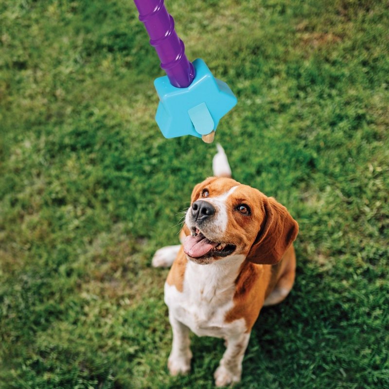 Używanie różdżki jest tak proste, jak 1-2-3 – wystarczy załadować smakołyki, przechylić różdżkę, aby napełnić dozownik na końcu i machnąć różdżką, aby rzucić smakołyki szczęśliwemu psiakowi!