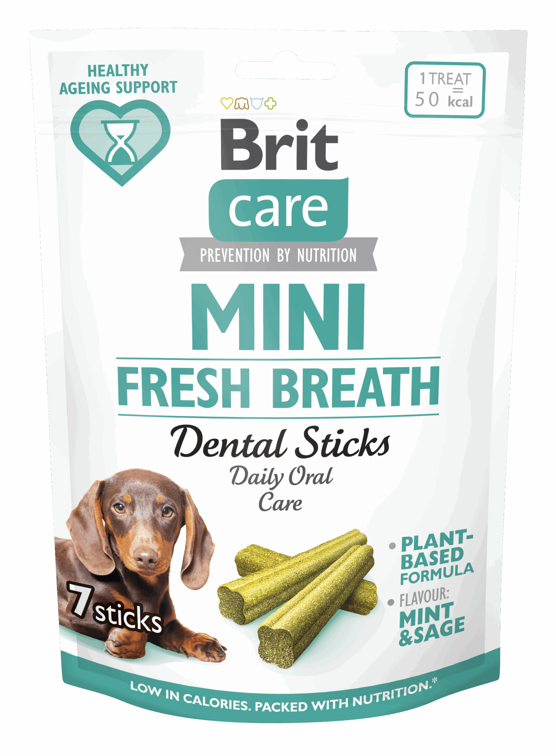 Niewielkie psy często są przekarmiane zbyt dużymi porcjami codziennych posiłków lub smakołyków. Każda pałeczka Brit Care Dog Mini Snacks Fresh Breath Dental Sticks zawiera jedynie 50 kcal, sprawiając, że przysmaki doskonale nadają do codziennego oferowania jako niskokaloryczna nagroda za dobre zachowanie.