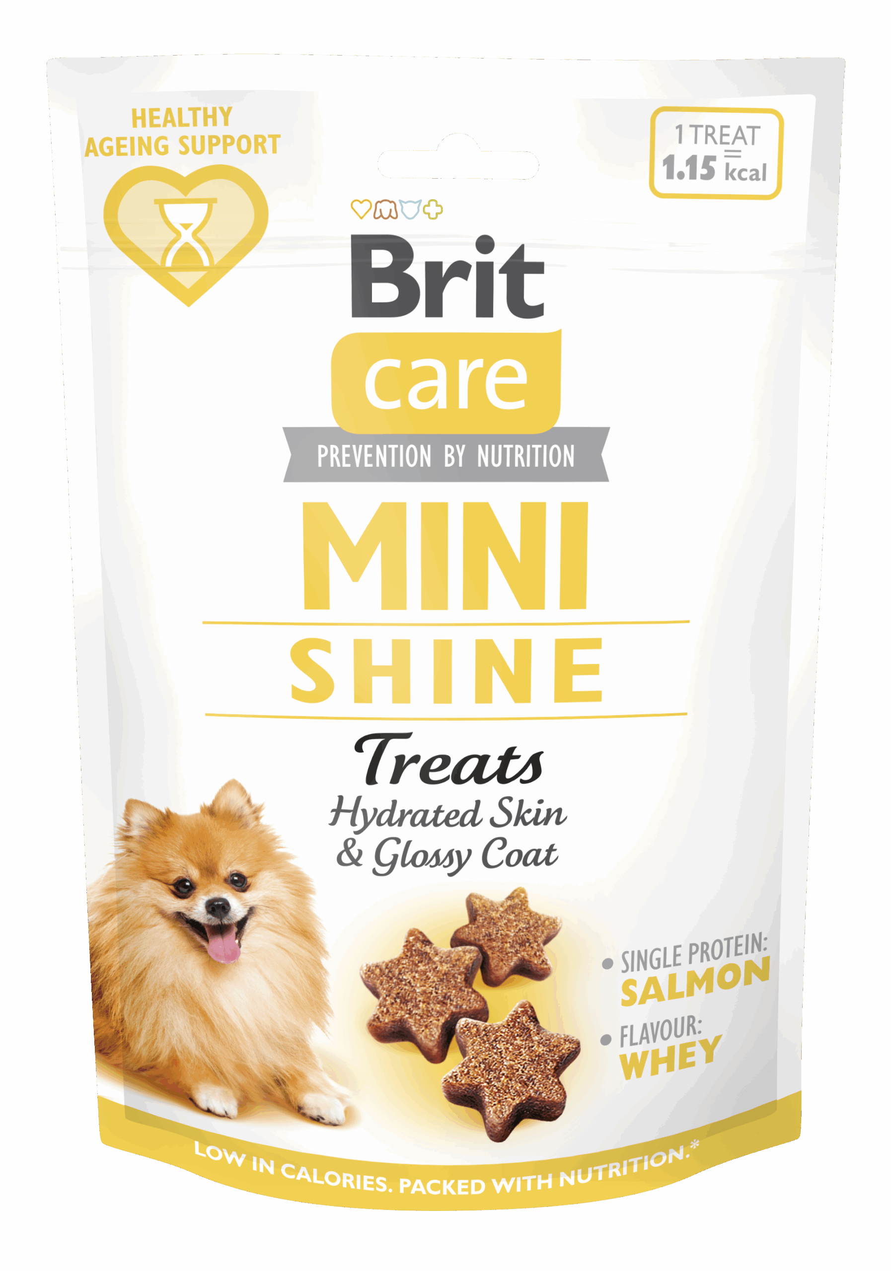 Małe psy często borykają się z problemami dermatologicznymi, ale także duża część przedstawicieli najmniejszych ras może pochwalić się bujną lub długą sierścią, która wymaga szczególnej troski, również od wewnątrz. Wsparcie smakołykami Brit Care Dog Mini Snack Shine zapewnia podaż kwasów omega-3 z oleju z łososia, siemienia lnianego oraz kwasu hialuronowego dla wsparcia bariery skórnej.