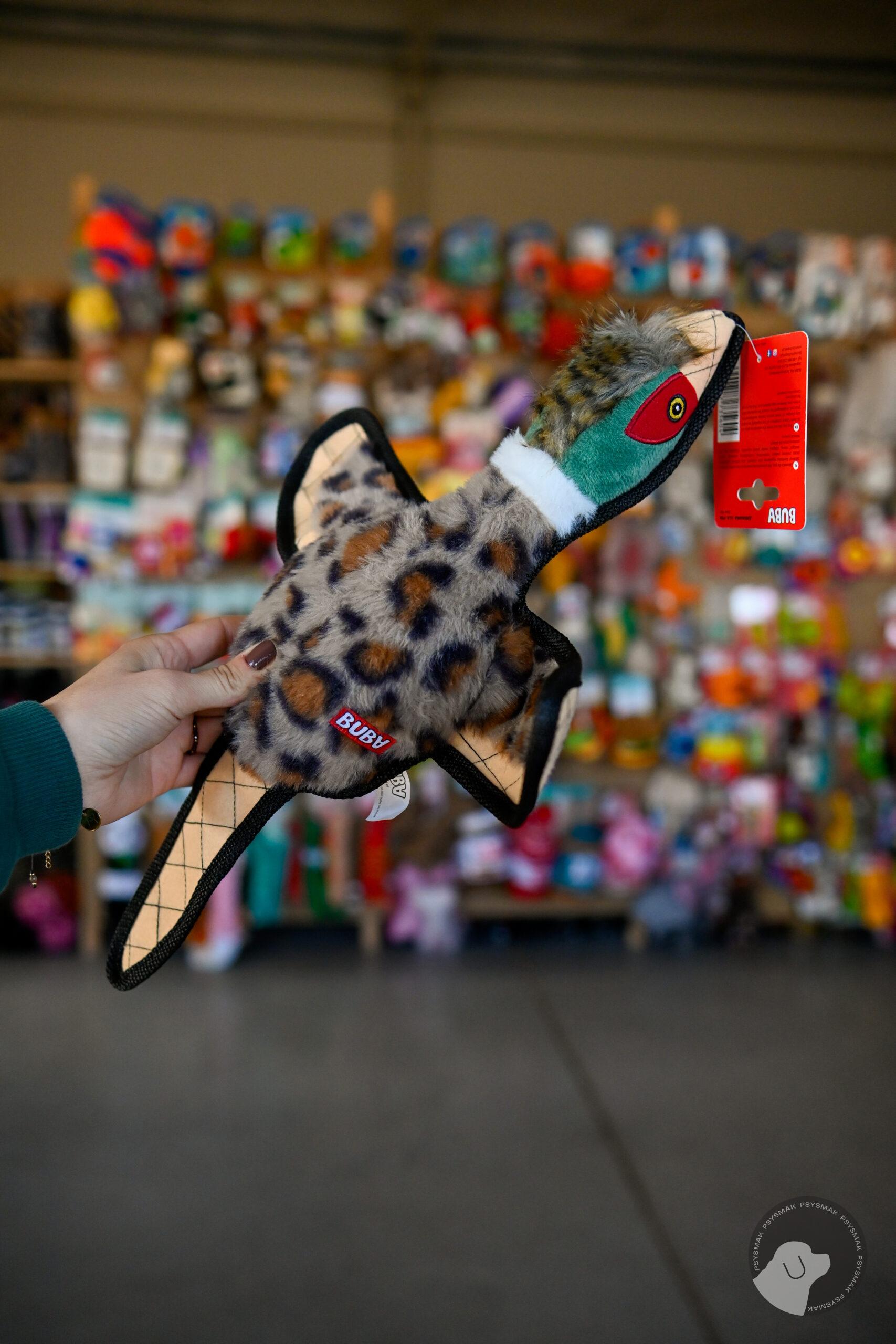 Pluszowy bażant dla psów ras średnich i dużych. Zabawka pikowana, wykonana z mocnego materiału z dodatkowymi obszyciami, by zabawa trwała w najlepsze przez długie godziny! Wierzch zabawki pokryty jest miłym, włochatym materiałem imitującym upierzenie. Posiada dużą piszczałkę, która chrumka! Wymiary: 44 x 34 x 6cm