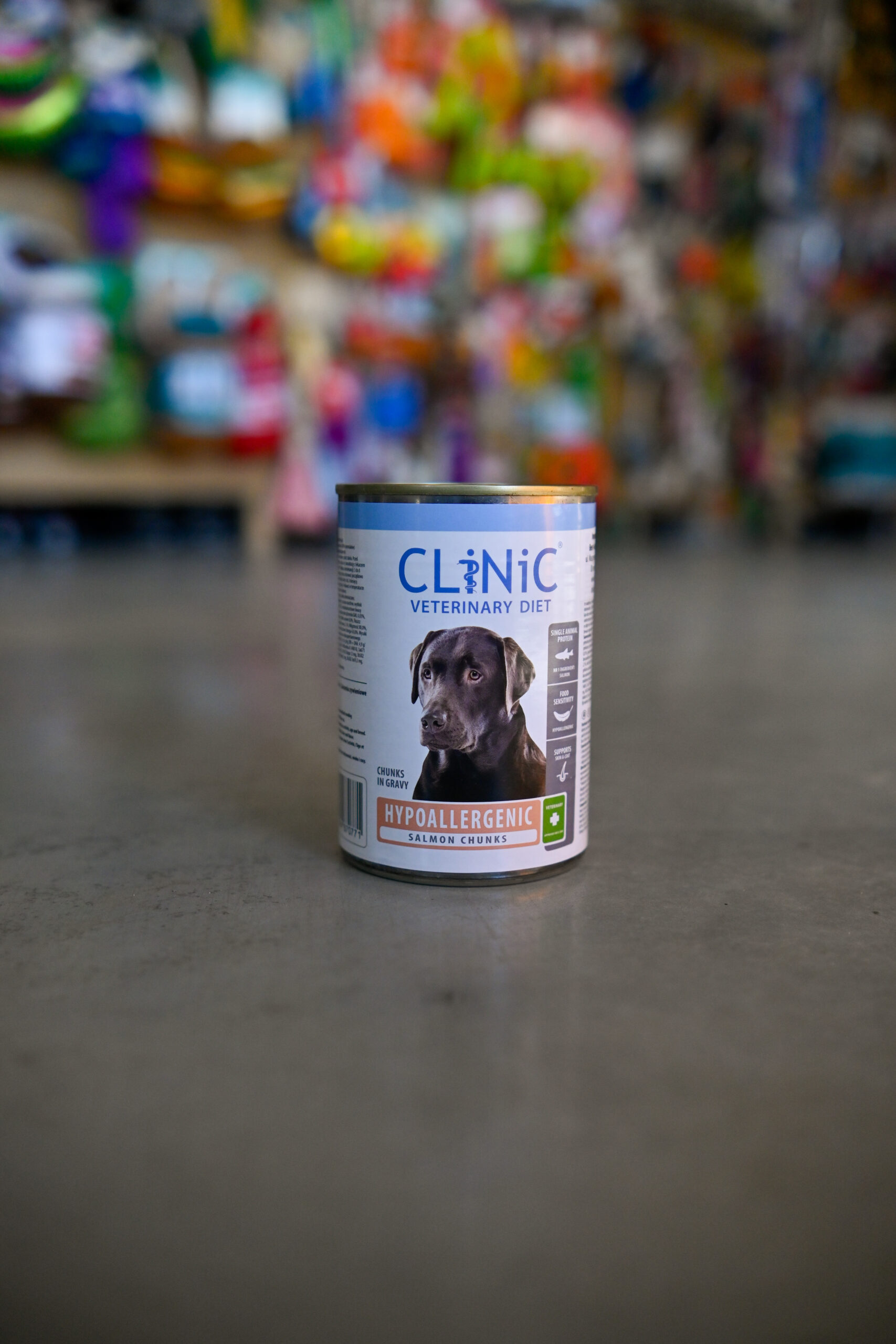 CLiNiC Hypoallergenic Salmon to mokra, pełnoporcjowa dietetyczna karma dla dorosłych psów, która pomaga obniżyć nietolerancję składników i substancji odżywczych oraz wspomaga funkcjonowanie skóry w przypadku dermatoz i nadmiernej utraty sierści u psów.