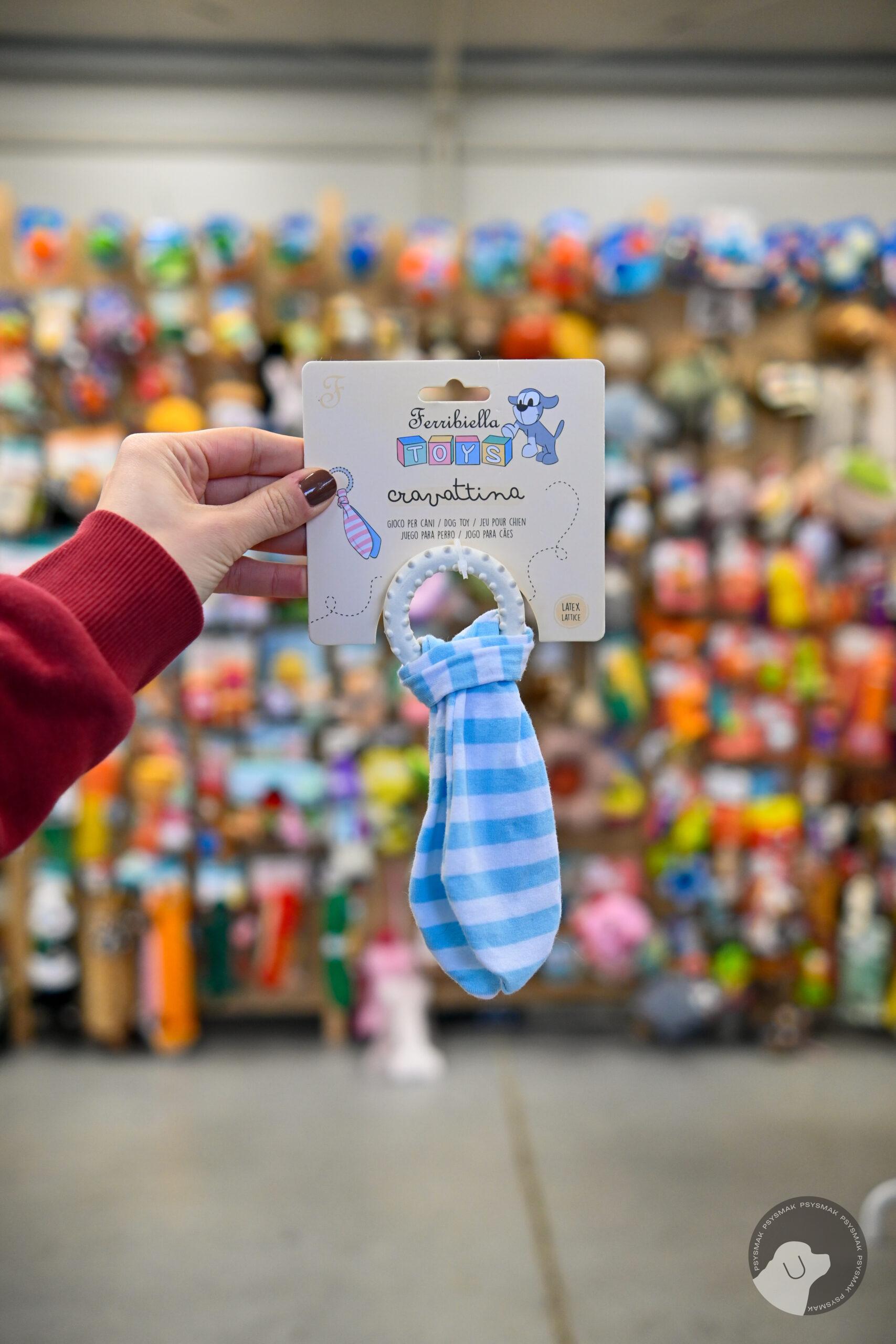 Zabawka dla psa – krawat to propozycja dla szczeniaków, które kochają podgryzanie, szarpanie i wiele czasu spędzać na harcach i zabawie. Ring wykonany został z miękkiego, lekkiego i doskonale sprawdzającego się przy mlecznych zębach lateksu. Wypustki sprawiają, ze dodatkowo zabawka świetnie sprawdza się u psów w czasie wymiany zębów mlecznych na stałe. Wypustki delikatnie masują swędzące dziąsła, co pozwala pupilowi na odrobinę ulgi oraz minimalizuje podgryzanie elementów wyposażenia naszego domu. Materiałowy element pozwala na przeciąganie się z właścicielem. czy innymi psimi kompanami.   Uwaga, kolor zabawki wysyłany losowo. W razie zabrudzenia wystarczy wypłukać pod bieżącą wodą, przy użyciu delikatnych i bezpiecznych dla zwierząt środków czyszczących. Pamiętaj! Nie ma zabawek niezniszczalnych! Zabawa zawsze powinna odbywać się pod opieką właściciela. Zabawki należy dobierać zgodnie z wiekiem, charakterem i temperamentem pupila! 21 x 6 x 1 cm