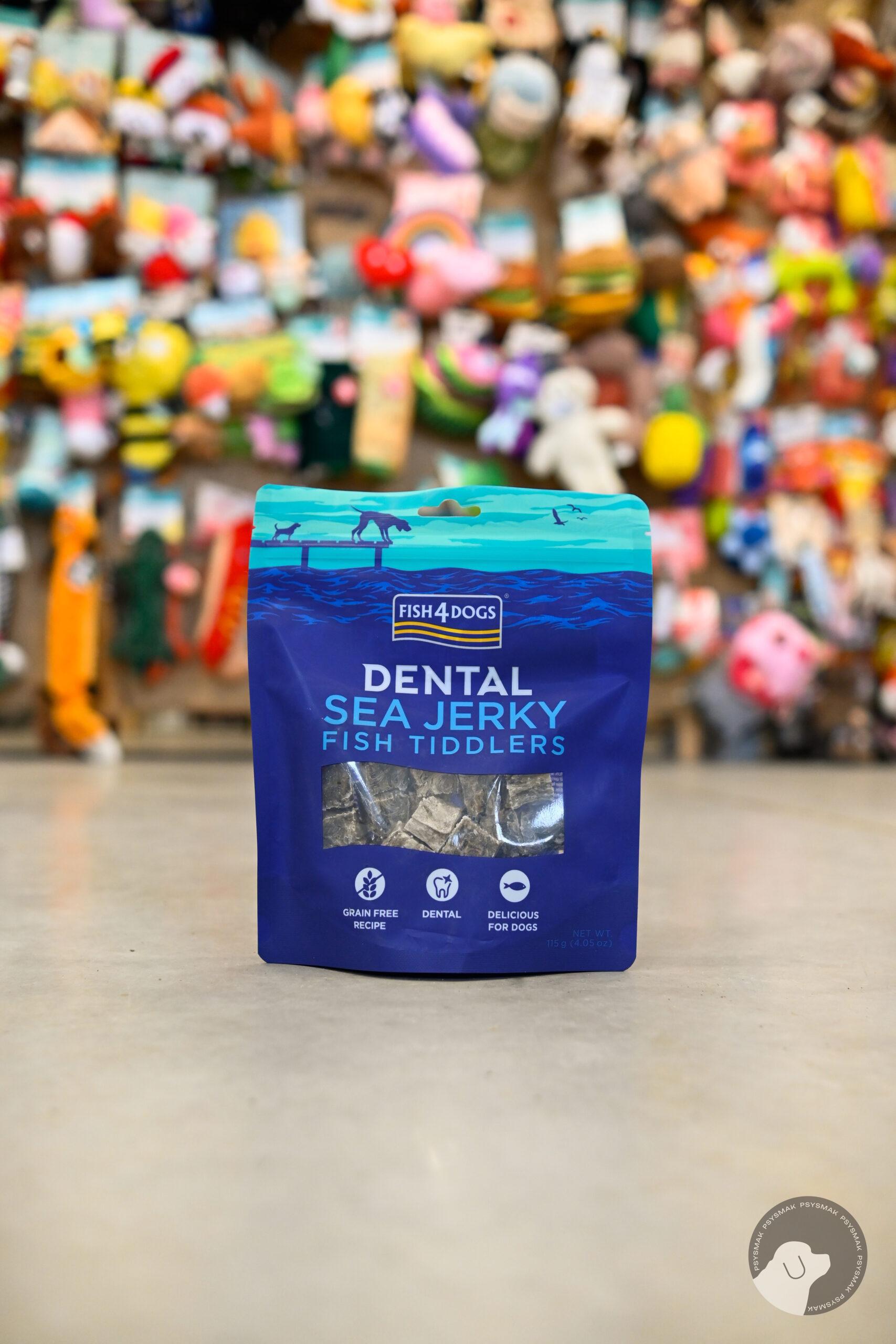 Przysmaki dentystyczne Fish4Dogs Sea Jerky Fish Tiddlers z suszonej skóry ryby pomagają usunąć kamień nazębny. Skóra została uformowana w sposób, aby pies miał możliwość jak najlepiej czyścić sobie zęby. Mają nierówną strukturę, która czyści zęby. W walce z kamieniem nazębnym trzeba przede wszystkim postawić na profilaktykę. Podawaj codziennie przysmak dentystyczny, aby uniemożliwić osadzanie się kamienia nazębnego.