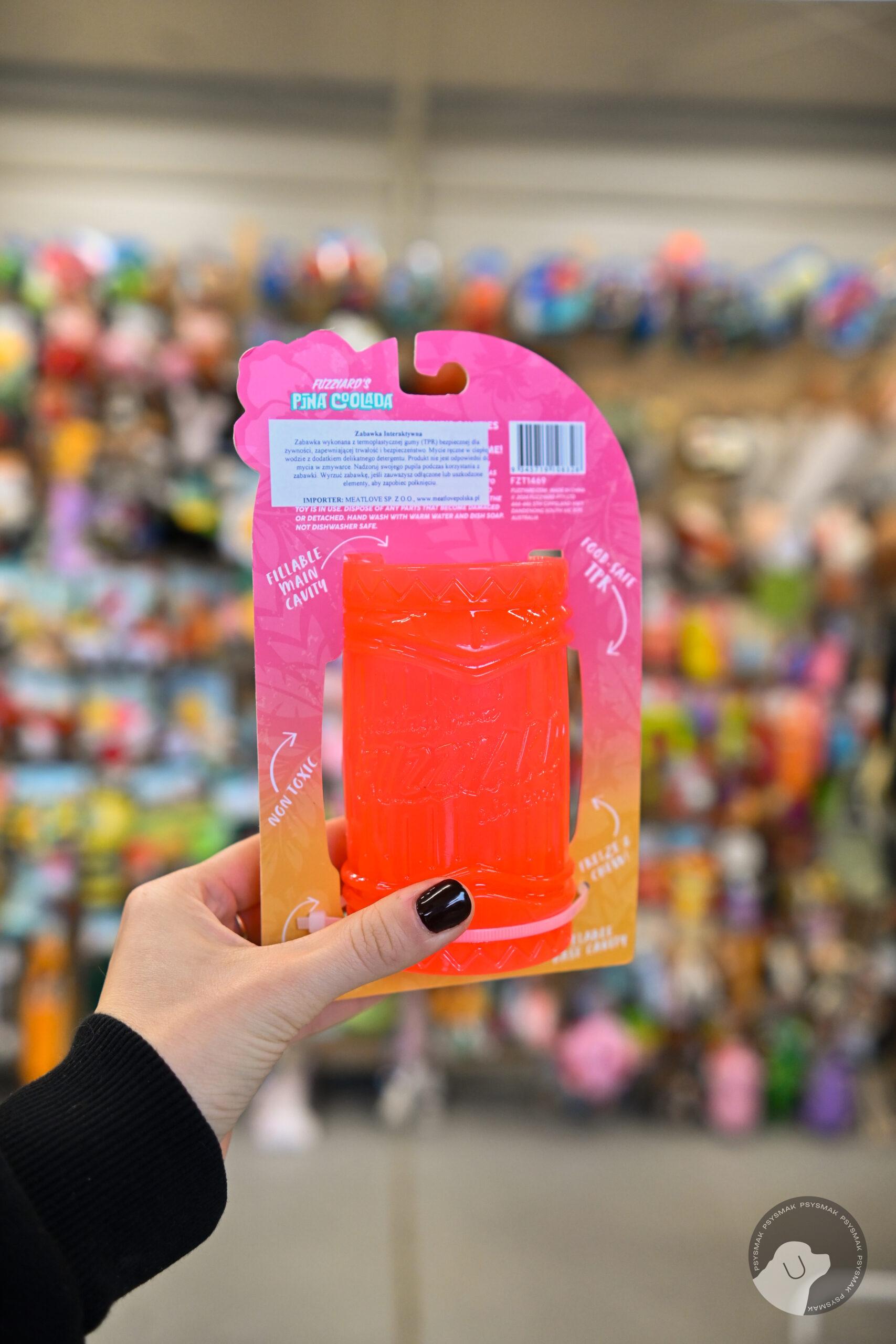Dwukomorowy kubek na mrożone przysmaki zapewnia Twojemu pupilowi cudowne, orzeźwiające doświadczenie. Wystarczy wypełnić jedną lub obie komory ulubionymi pastami lub płynnymi smakołykami Twojego psa, zamrozić i cieszyć się widokiem, jak Twój zwierzak z zapałem pracuje, by dostać się do środka. To gwarancja najlepszej zabawy, która potrwa godzinami! Pozwól swojemu czworonogowi się zrelaksować i schłodzić w najbardziej stylowy sposób – dzięki Pina Coolada od FuzzYard! Jeśli lubisz pina colady i letnie orzeźwienie, Pina Coolada to idealny wybór dla Twojego psa! Wypełnij jedną lub obie komory ulubionym przysmakiem pupila, włóż do zamrażarki i podaj w gorący dzień, by zapewnić mu chłodne orzeźwienie. To świetny sposób na zabawę i ochłodę jednocześnie. A jeśli chcesz szybko sprawić radość, możesz od razu napełnić zabawkę ulubionymi przysmakami i podać ją swojemu psu, bez konieczności mrożenia. Niezależnie od formy podania, Pina Coolada to gwarancja radości, orzeźwienia i świetnej zabawy każdego dnia! Propozycje przysmaków: • Pasty do wypełnienia: np. masło orzechowe (bez dodatku soli i cukru). • Mrożone przekąski: wypełnij kubek ulubionym przysmakiem psa, dopełnij wodą i zamroź. • Owocowe desery: pokrój owoce, które Twój pies uwielbia, dodaj do kubka, polej jogurtem greckim i zamroź i przygotuj wyjątkową przekąskę. Cechy i zalety: • Wysyłka z Polski – dostępność i szybka dostawa. • Zabawka na mrożone przysmaki – idealna na gorące dni. • Chłodzi podczas zabawy – łączy orzeźwienie z rozrywką. • Dwie komory wypełniające – więcej możliwości na różnorodne smakołyki. • Rozrywka dla znudzonych pupili – zajmuje psa na dłużej. • Dostosowana do lekkich i umiarkowanych gryzaczy – bezpieczna i trwała. • Wykonana z TPR dopuszczonego do kontaktu z żywnością – bezpieczna dla zdrowia psa. • Nietoksyczny materiał – pełna ochrona dla Twojego czworonoga. Wymiary: 7 cm x 7 cm x 13 cm – idealny rozmiar dla psów małych i średnich ras.   Materiały i pielęgnacja: Zabawka wykonana z termoplastycznej gumy (TPR) bezpiecznej dla żywności, zapewniającej trwałość i bezpieczeństwo. Mycie ręczne w ciepłej wodzie z dodatkiem delikatnego detergentu. Produkt nie jest odpowiedni do mycia w zmywarce. Nadzoruj swojego pupila podczas korzystania z zabawki. Wyrzuć zabawkę, jeśli zauważysz odłączone lub uszkodzone elementy, aby zapobiec połknięciu.