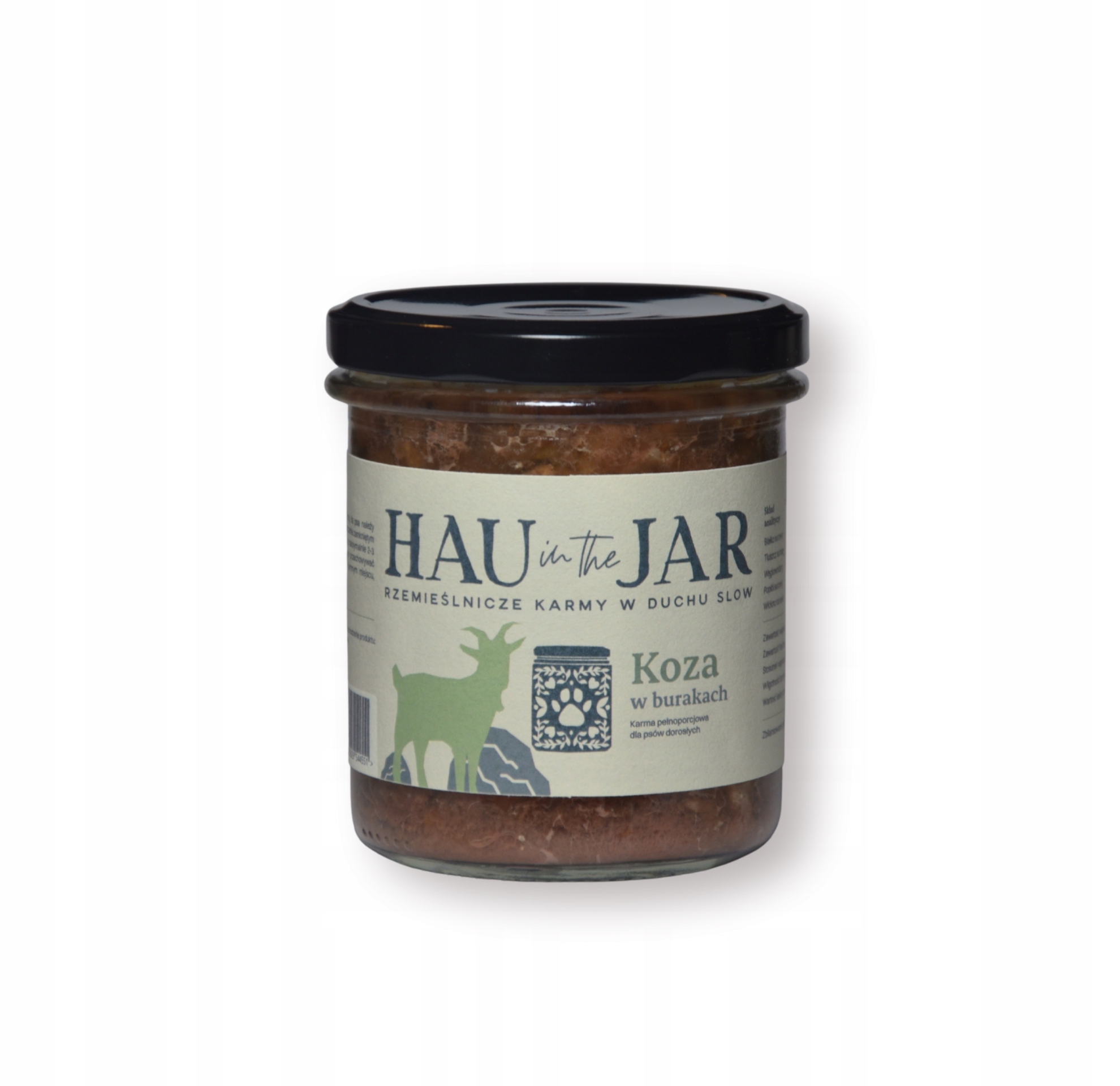 Skład: mięso szkieletowe z kozy 84,5%, buraki 6,0%, dynia 4,0%, marchewka 3,0%, witaminy i minerały 2,0%, olej słonecznikowy 0,5%.