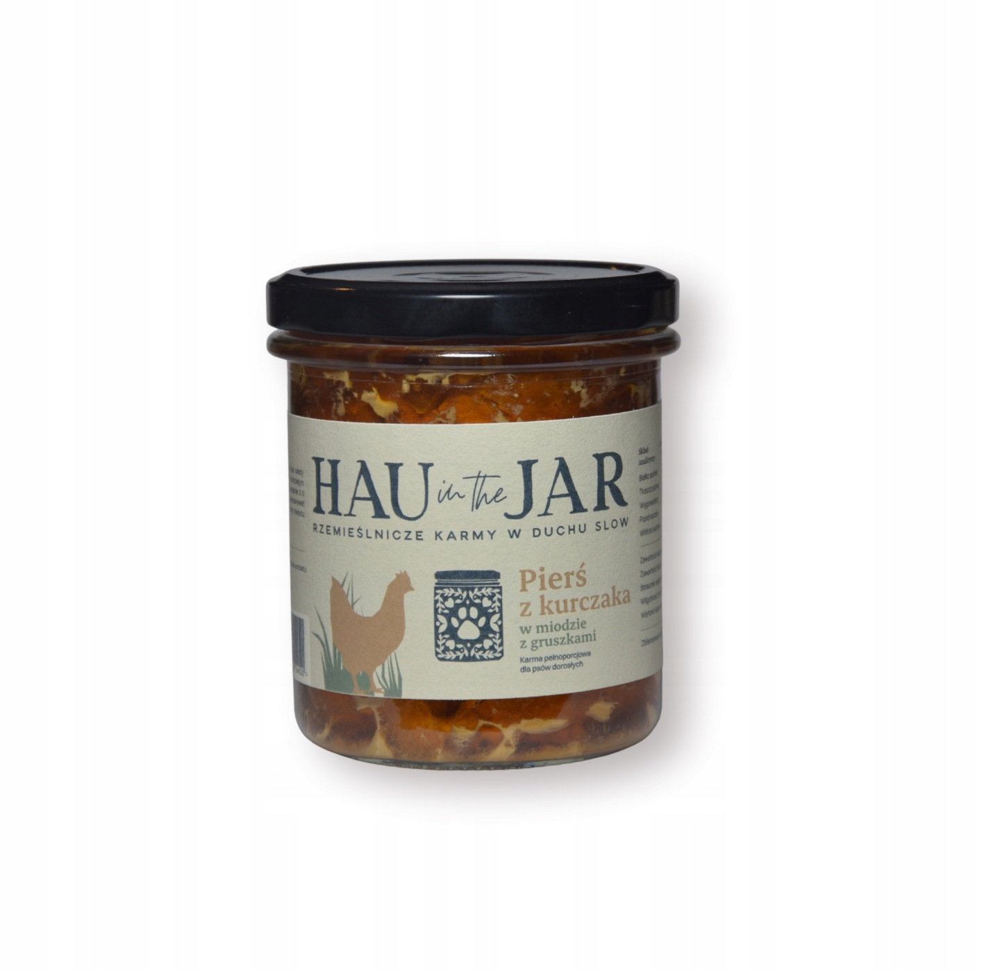 Hau in the Jar mokra karma dla psów – kurczak w miodzie z gruszkami 350g w słoiku