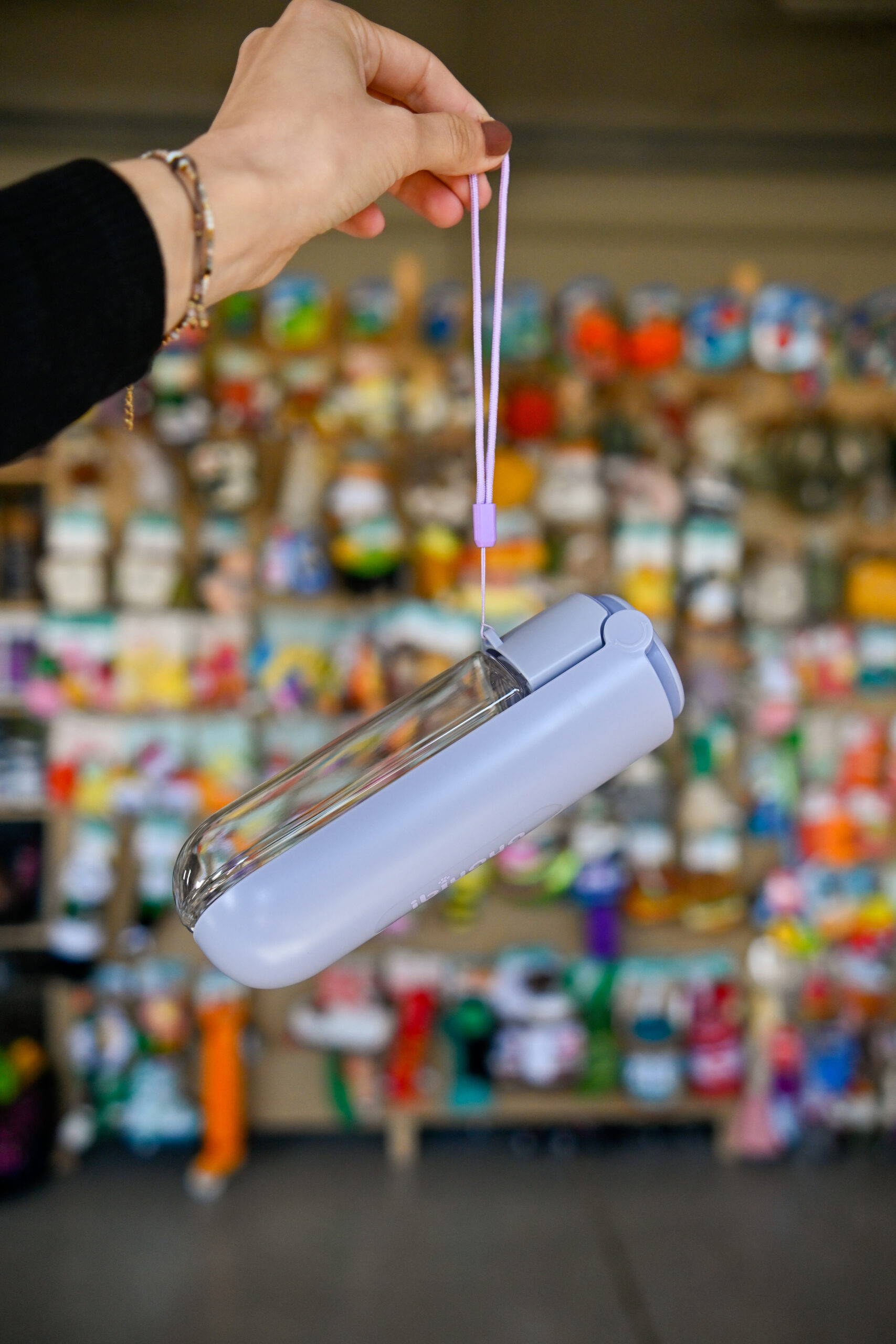 • Odpinany sznurek do przenoszenia Umożliwia łatwe zawieszenie butelki przy plecaku, smyczy czy pasku – wygoda zawsze pod ręką.