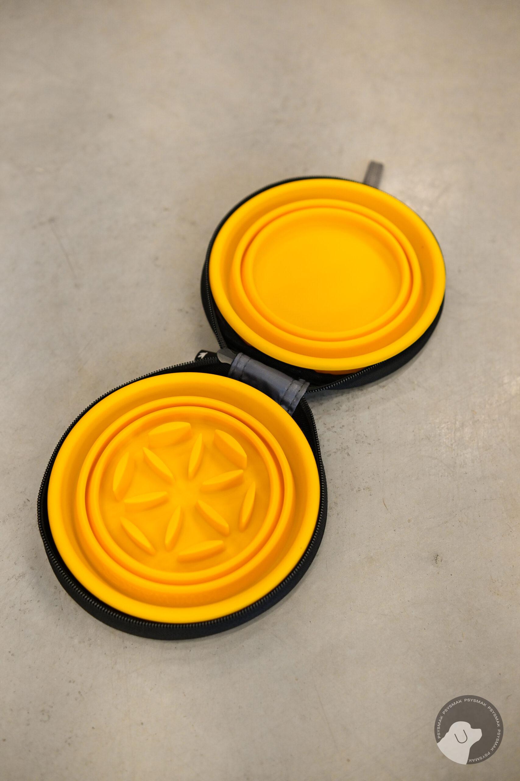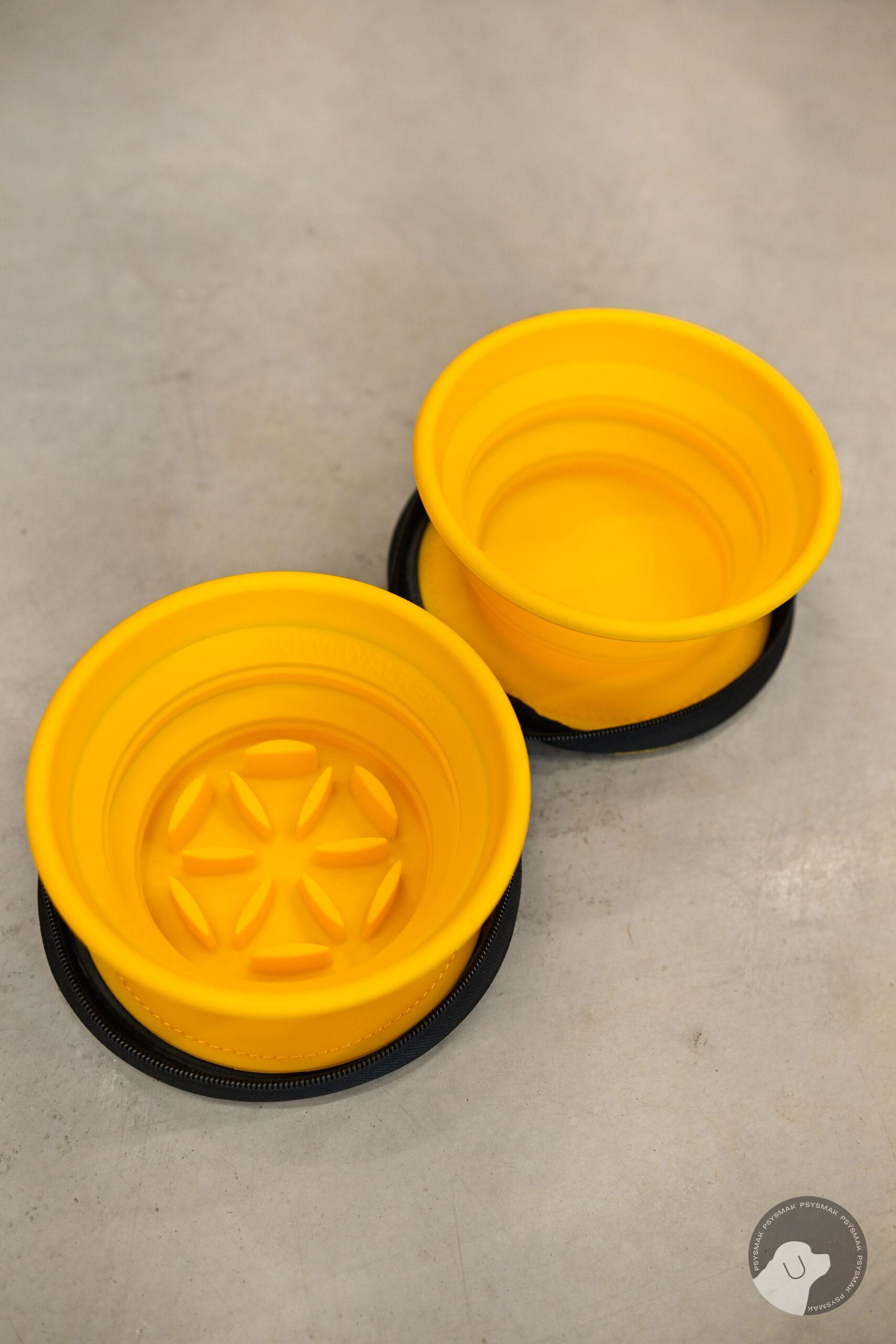 Kiwi Walker TRAVEL DOUBLE BOWL SLOWFEEDER zestaw spowalniających misek turystycznych żółte