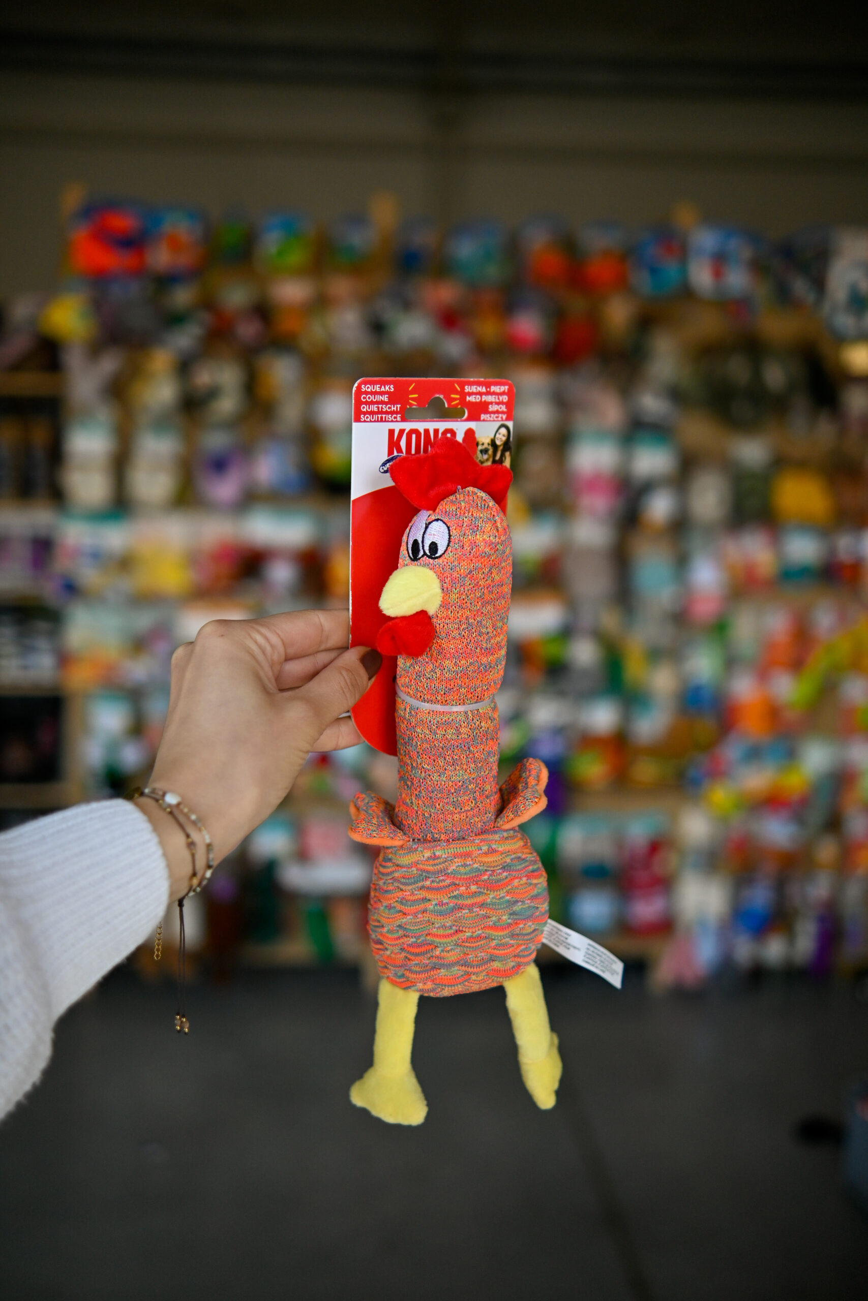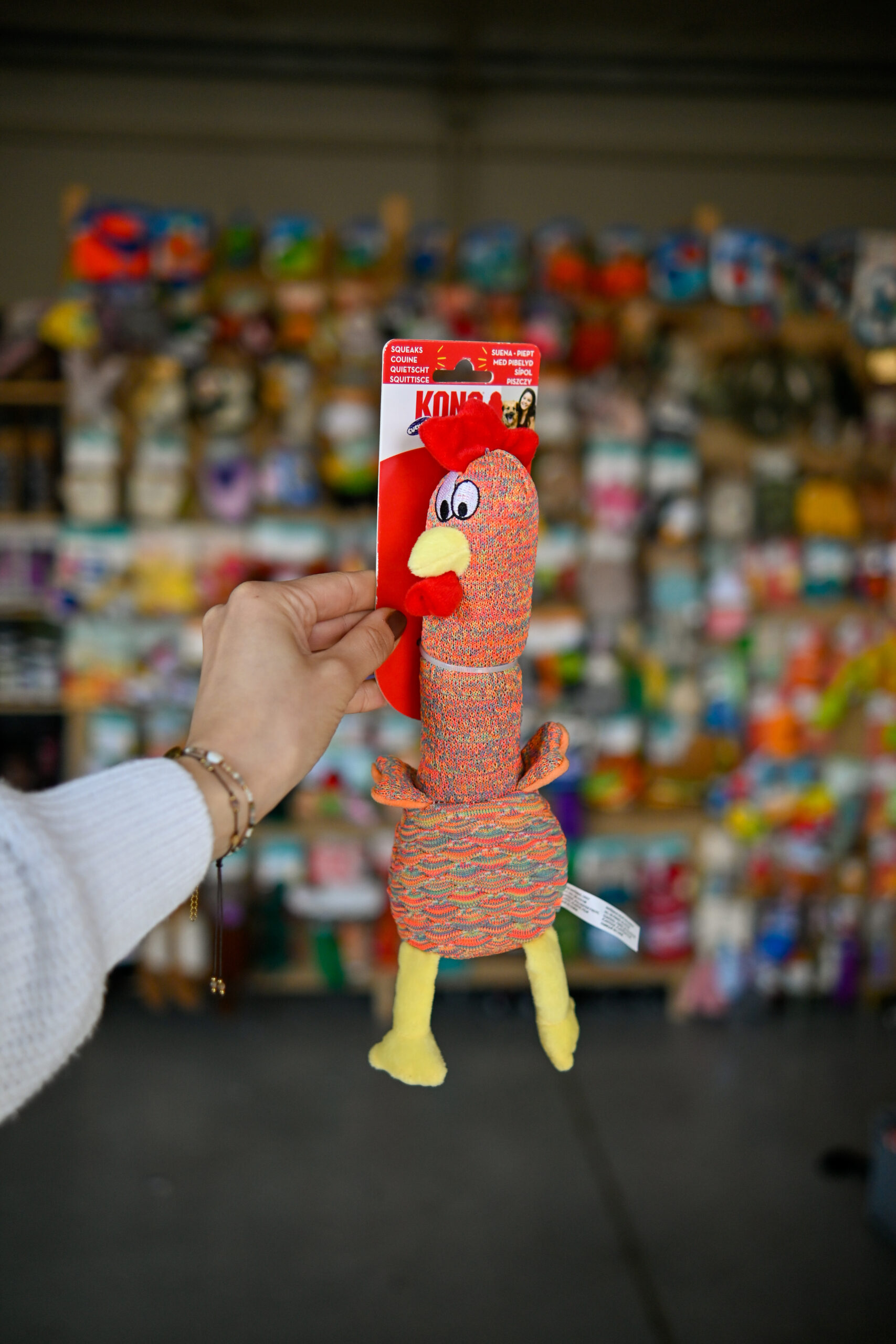 KONG po raz kolejny stworzył kolekcję uroczych zabawek dla psów. Shakers Cuckoos to urocza propozycja dla psów kochających szeleszczące zabawki z piszczałkami. Podłużny kształt pozwala zwierzakowi na wygodne pochwycenie i przenoszenie zabawki, dodatkowo pozwala w wygodny sposób złapać kaczkę czy kurczaka w czasie aportowania. Odstające elementy są także przydatne w czasie ciekawych i ekscytujących zabaw z opiekunem czy psimi przyjaciółmi.   Kolor zabawki wysyłany losowo PAMIĘTAJ! Nie ma zabawek niezniszczalnych, ważne jest, aby zabawki dobierane były zgodnie z charakterem i temperamentem psa. Zabawa zawsze powinna odbywać się pod stałą opieką i kontrolą właściciela. Uwaga: Nigdy nie zostawiaj zwierzaka bez opieki podczas zabawy. Żadna zabawka nie jest niezniszczalna. Aby zapobiec obrażeniom, zabawka powinna być regularnie sprawdzana pod kątem uszkodzeń lub luźnych części i w razie potrzeby wymieniana.