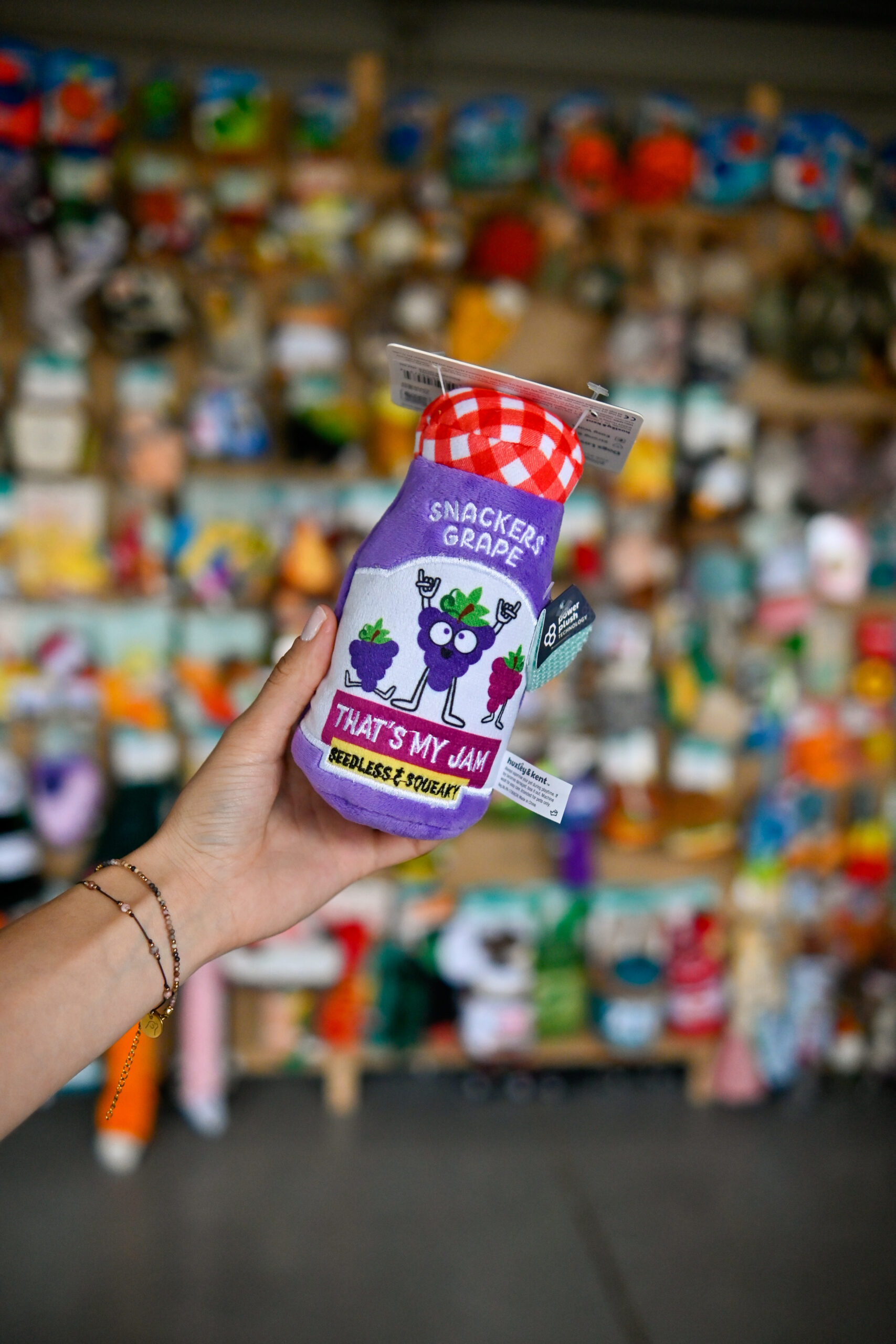 Lulubelles Power Plush Snackers Grape Jam Small to urocza, miękka zabawka dla psa, inspirowana smacznym dżemem winogronowym. Zabawka ma kompaktowy rozmiar, idealny dla małych ras psów lub jako dodatkowa zabawka dla większych czworonogów.