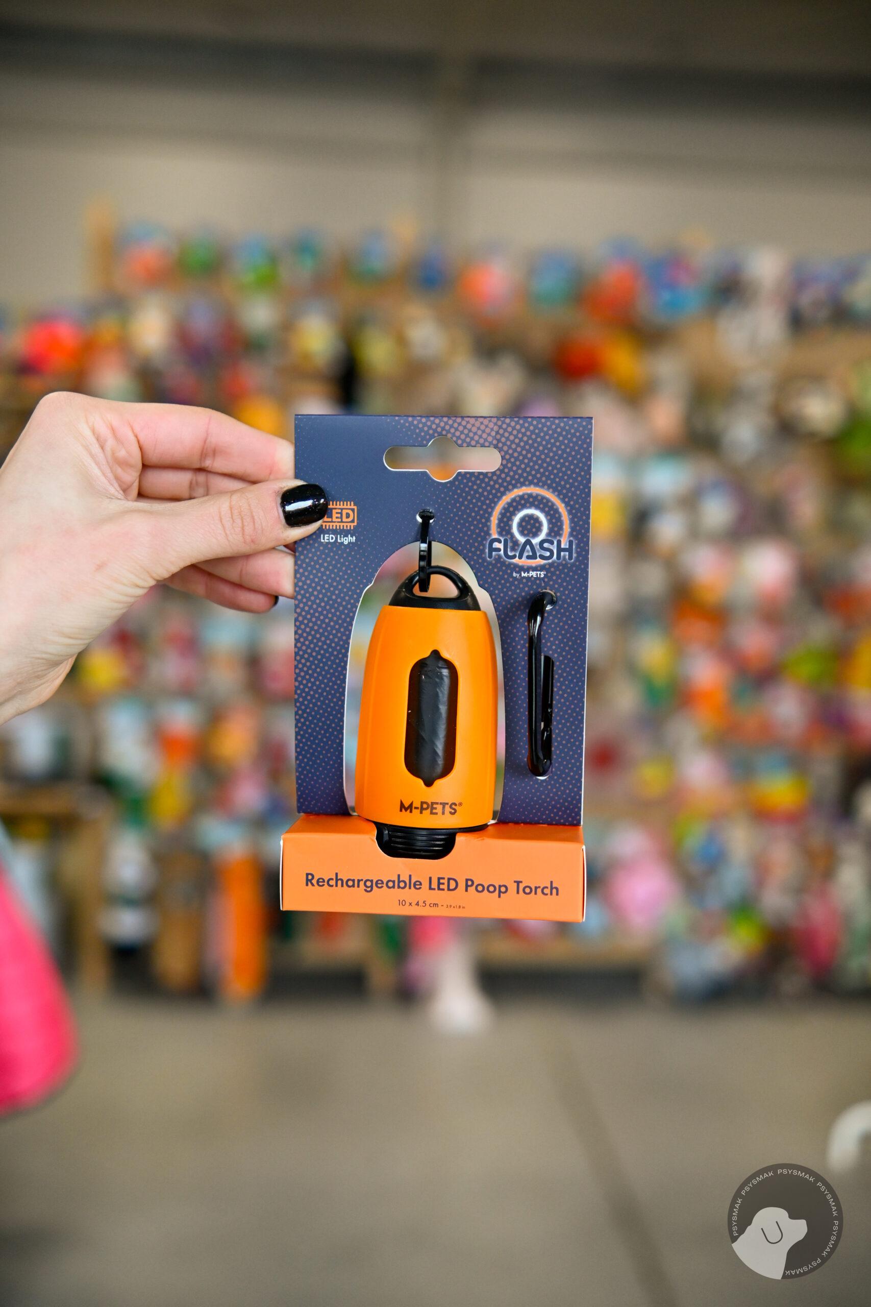 M-pets Latarka FLASH LED z dyspenserem – Pomarańczowa