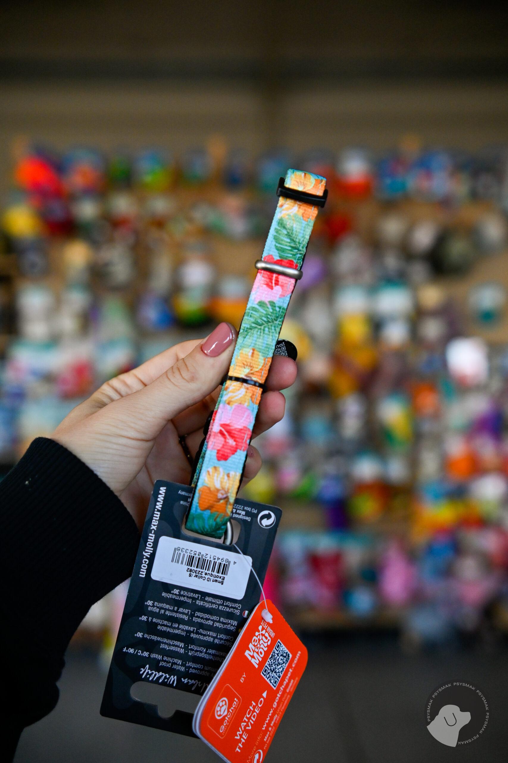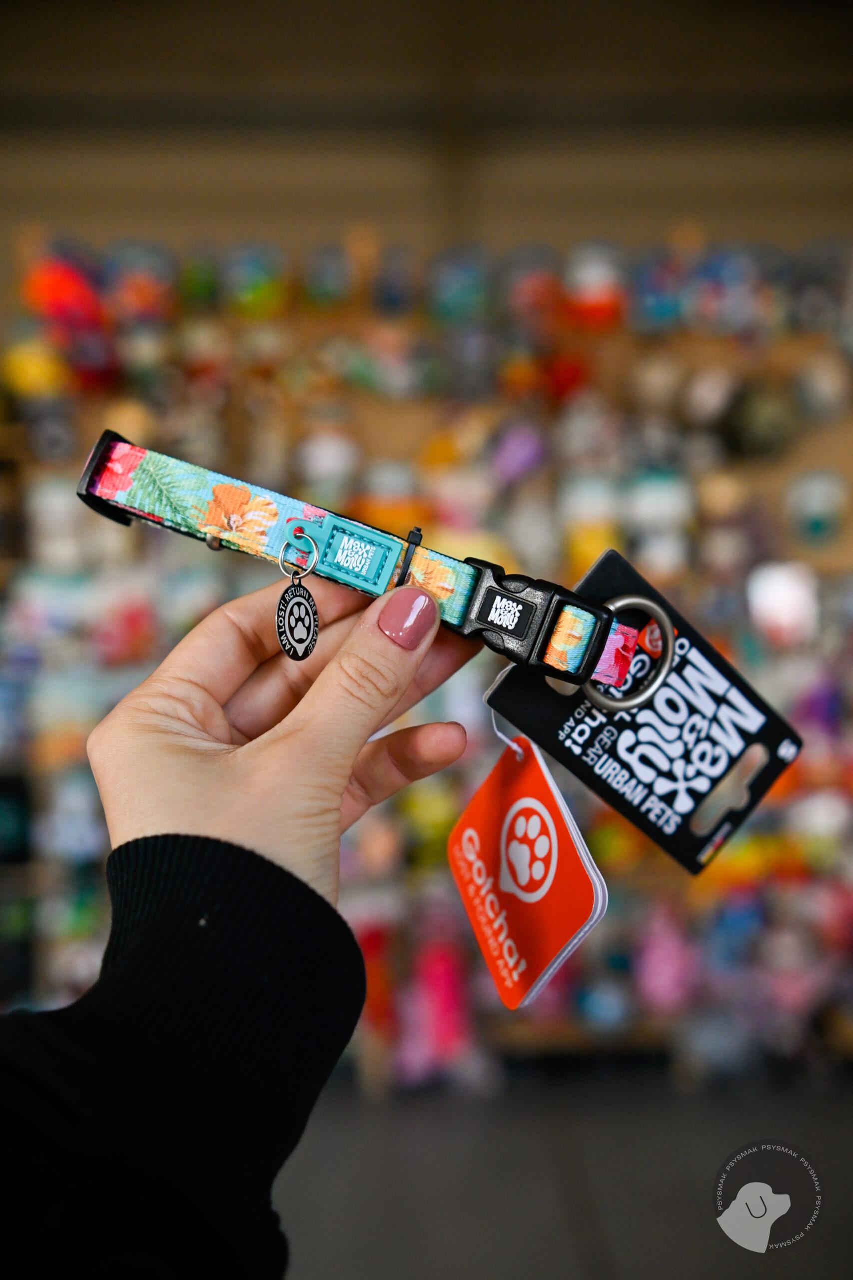 Max&Molly GOTCHA! Smart ID Coffe Exotique Collar wyróżnia się nie tylko ciekawym, wesołym wzorem i żywymi kolorami. Posiada liczne detale sprawiające, że jej użytkowanie będzie czystą przyjemnością, m.in. jest to