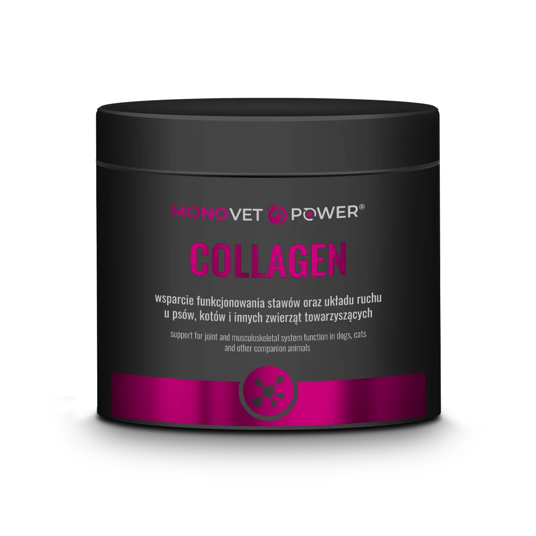 MONOVET POWER® – COLLAGEN – produkt w postaci proszku służący do suplementacji kolagenu dla psów i kotów 120 g