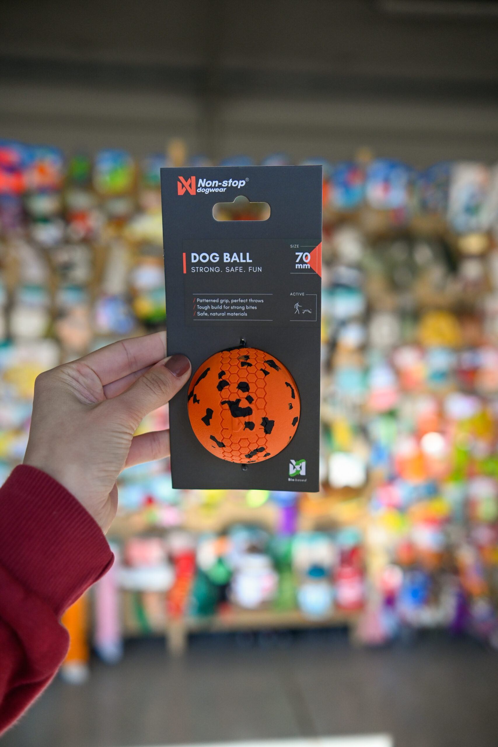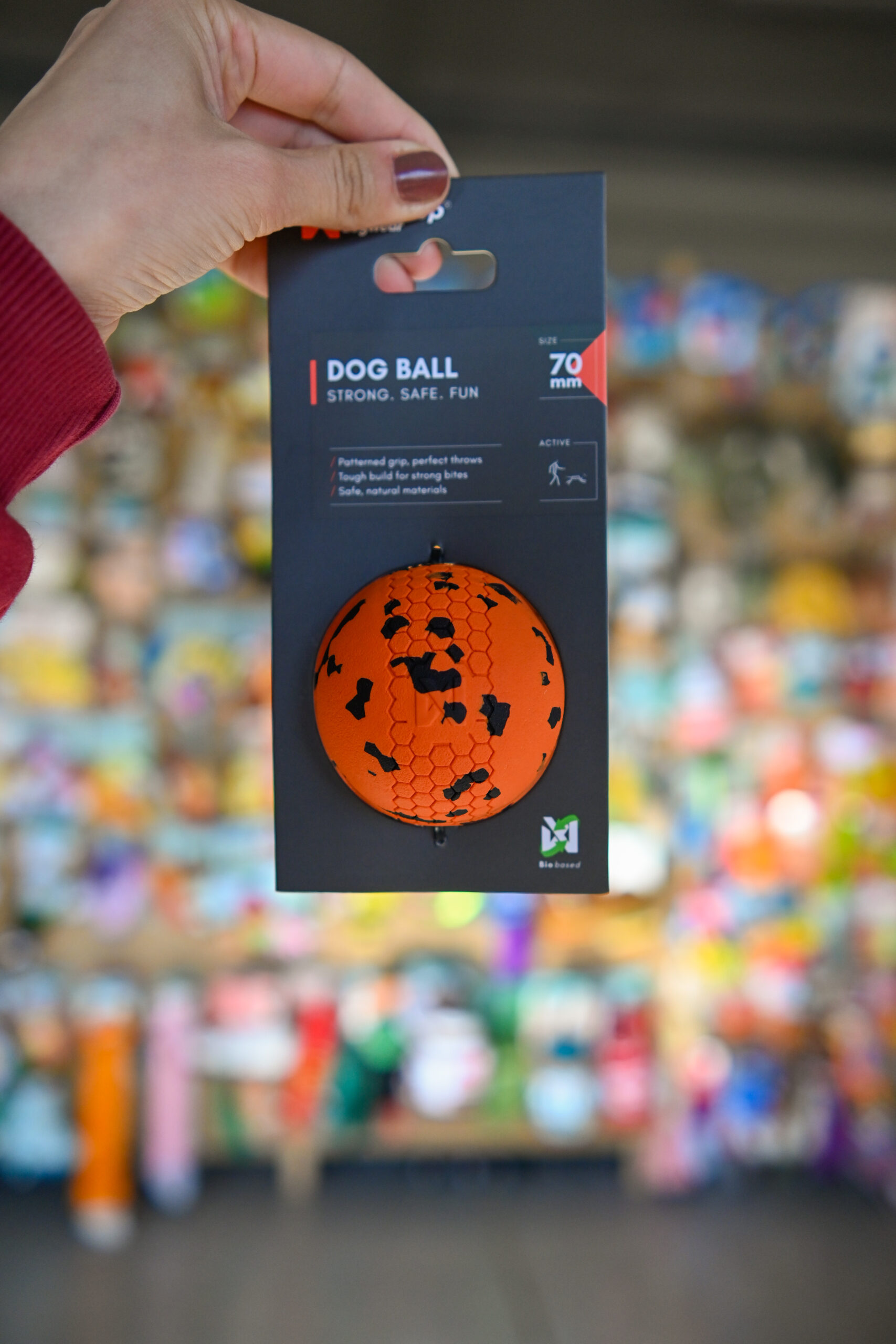Piłka dla psa jest stworzona do zabawy – w dowolnym miejscu i czasie. Zaprojektowany z myślą o trwałości i zabawie, dobrze się odbija, utrzymując twojego psa zaangażowanego w każdym pościgu. Wykonany z naturalnej, nietoksycznej gumy i włókna bambusowego, wytrzymuje trudne ukąszenia, pozostając jednocześnie delikatnym dla zębów i dziąseł. Teksturowana powierzchnia zapewnia pewny chwyt, ułatwiając rzucanie, łapanie i przenoszenie. Posiada również otwór, aby dodać linę dla dodatkowej zabawy i zabawy z szarpaniem. Piłka dla psa jest dostępna w dwóch rozmiarach, dla średnich i dużych psów. Ta zabawka jest przeznaczona do interaktywnej zabawy – sprawdź zużycie, nadzoruj użytkowanie i zdejmij ją, jeśli jest uszkodzona, aby zapewnić bezpieczeństwo i zabawę.