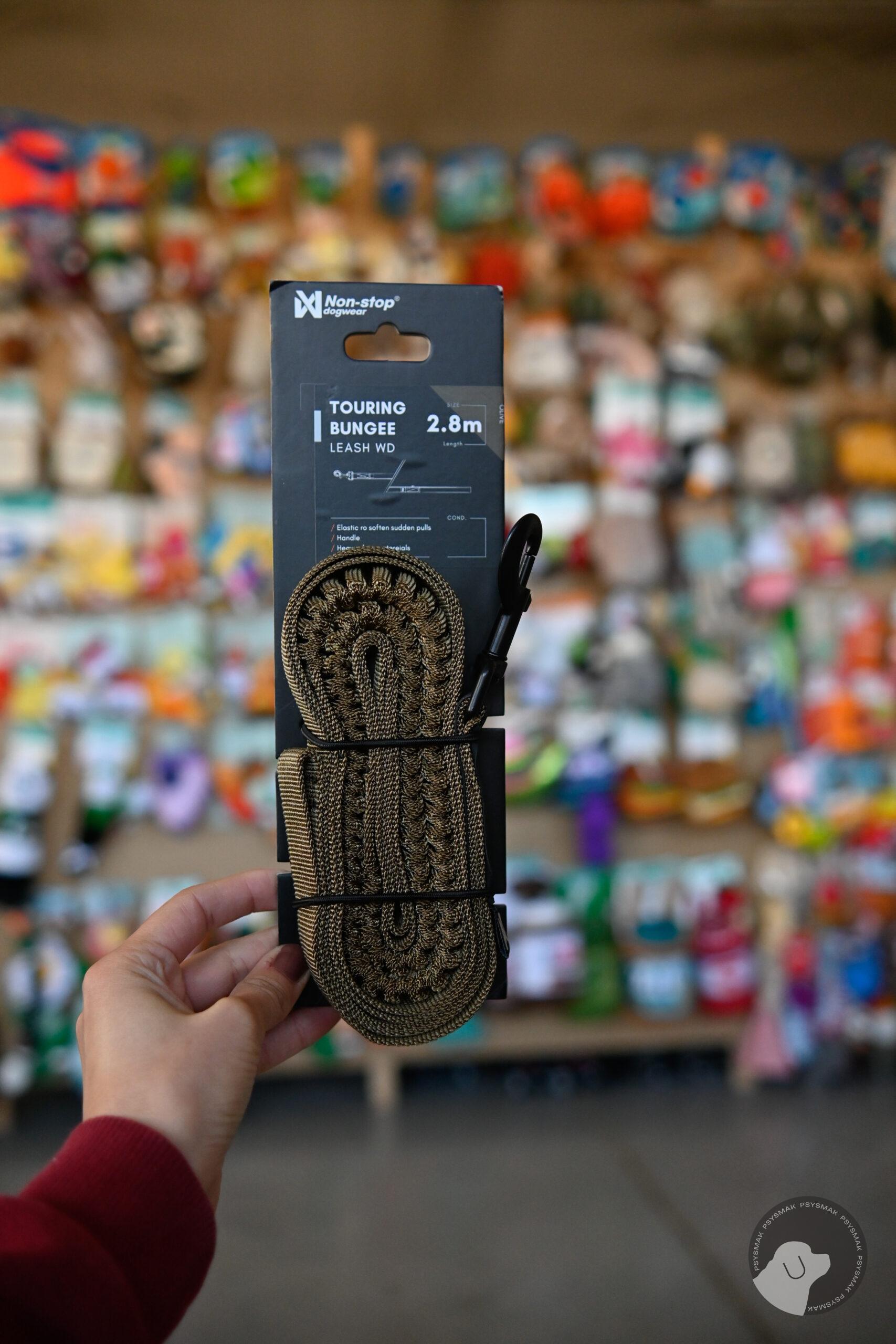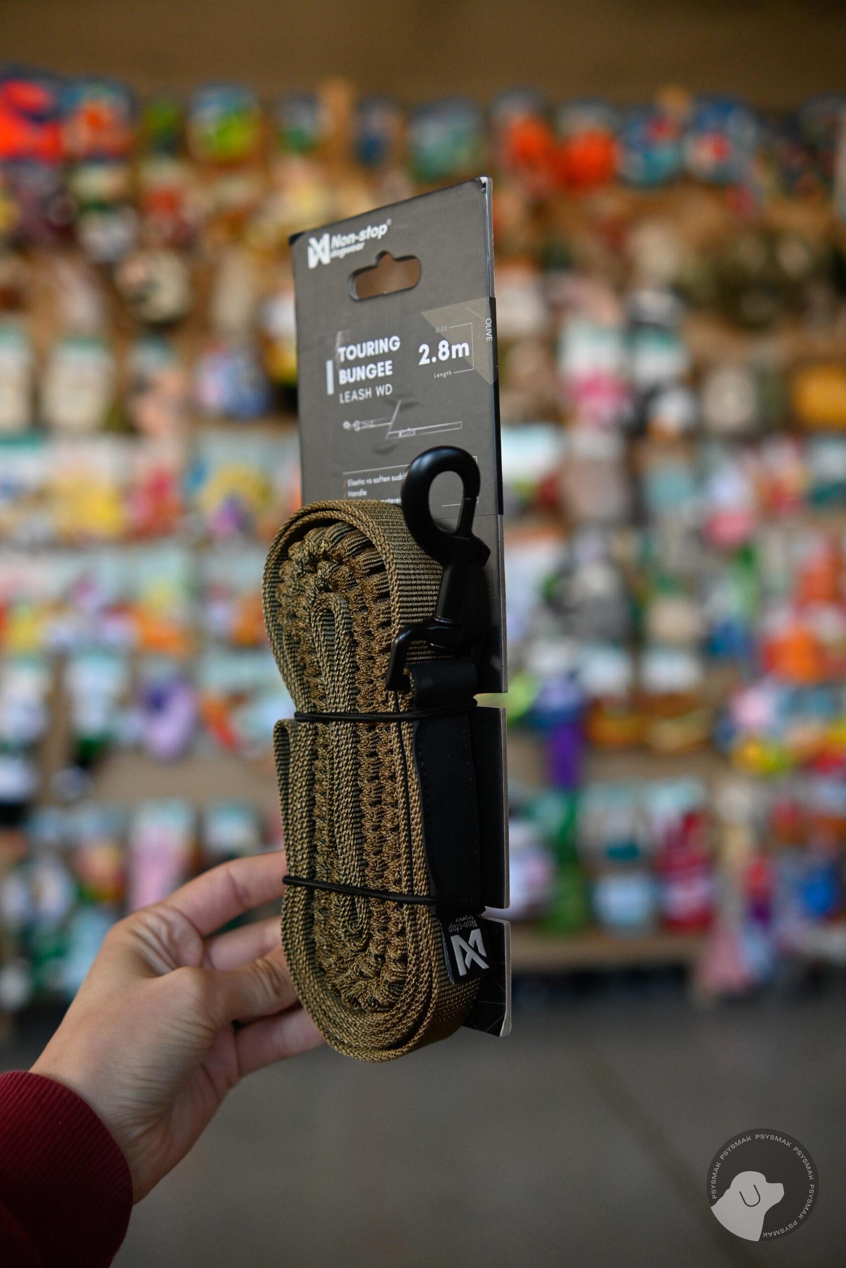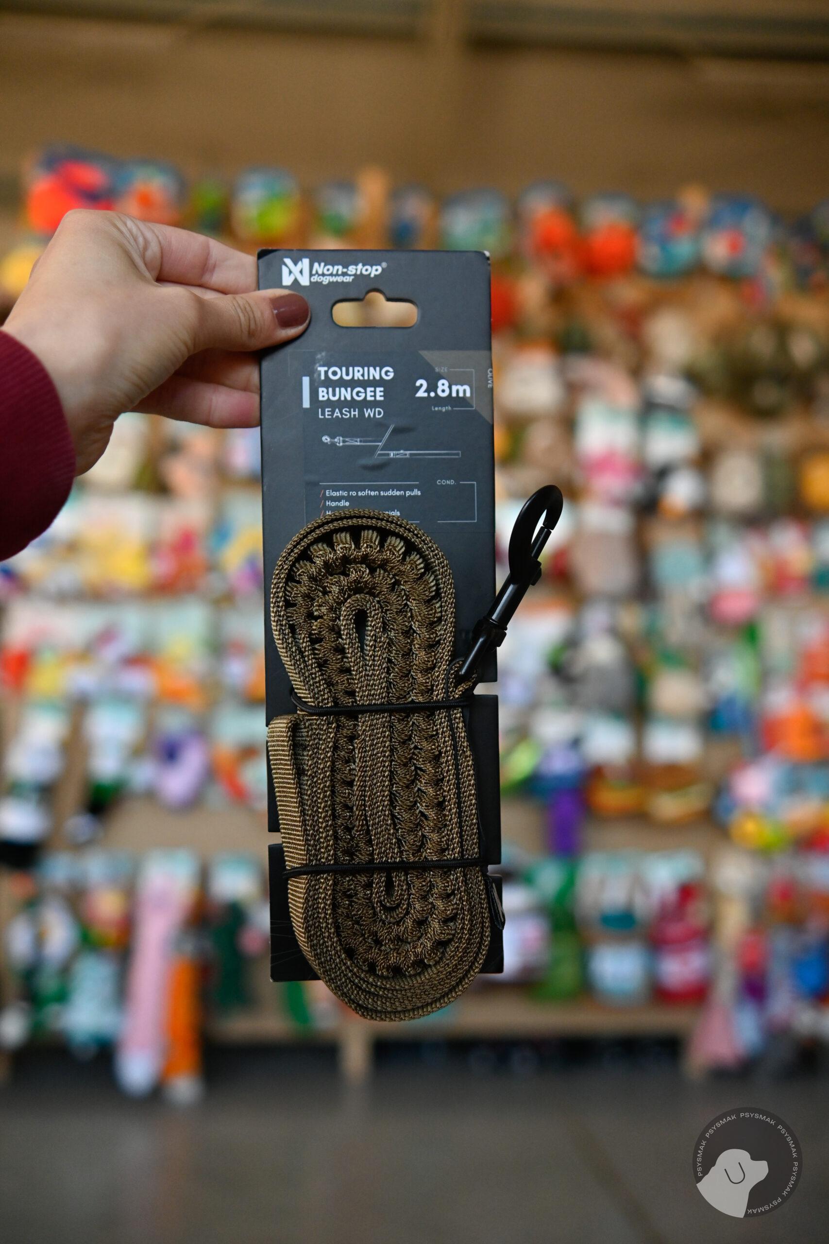 Non-stop dogwear Touring bungee leash wd olive 2,8 m 23 mm – smycz zielona z amortyzatorem i rączką awaryjną