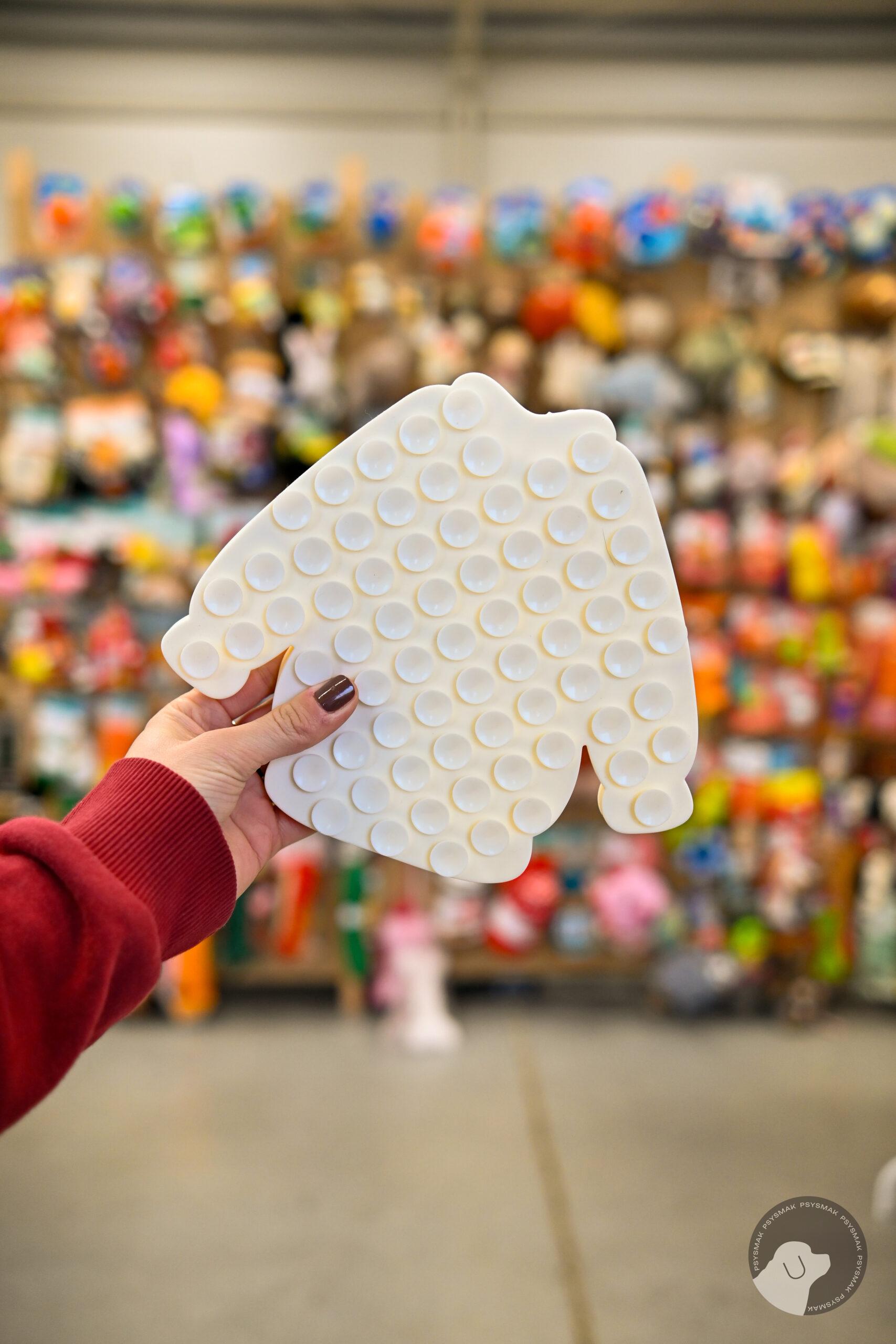 Szczegóły: Mata wykonana jest w 100% z bezpiecznego, nietoksycznego silikonu klasy spożywczej, wolnego od BPA. Trwałe, bezzapachowa oraz odporna na działanie wysokich temperatur – można ją bezpiecznie używać w piekarniku, kuchence mikrofalowej i myć w zmywarce. Przy myciu ręcznym zaleca się użycie szczoteczki z włosiem, aby łatwo usunąć pozostałości jedzenia. Mata do lizania Sweterek ma wymiary 22,2 × 19,5 × 1,6 cm i została wyposażona w aż 70 przyssawekumieszczonych na spodzie, które zapobiegają jej przesuwaniu się podczas sesji wylizywania i zabawy wzbogacającej.