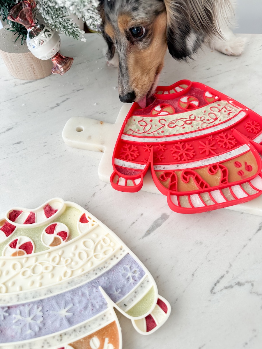 Wyobraź sobie spokojny, zimowy wieczór. Za oknem wirują płatki śniegu, a Twój zwierzak z zadowoleniem wylizuje swoje ulubione przysmaki z maty w kształcie świątecznego Swetra. Ta urocza mata do lizania to coś więcej niż zabawka – to sposób na wyciszenie, skupienie i chwilę przyjemności dla psa lub kota. Każde wylizanie pomaga zredukować stres, zajmuje uwagę i przynosi ukojenie, gdy Twój zwierzak potrzebuje odrobiny relaksu. Drobna struktura powierzchni delikatnie masuje język, wspierając naturalne oczyszczanie pyska i zapewniając satysfakcjonującą zabawę. Dzięki przyssawkom u spodu mata stabilnie trzyma się podłoża – nie ślizga się nawet podczas intensywnego lizania, a przy okazji świetnie sprawdza się też w kąpieli. Wykonana z bezpiecznego silikonu klasy spożywczej, nadaje się do mycia w zmywarce – czysto, wygodnie i bez wysiłku. Możesz ją również schłodzić w zamrażarce, by przedłużyć zabawę lub podać orzeźwiający przysmak. Idealny prezent dla Twojego futrzanego przyjaciela – stylowy, praktyczny i pełen zimowego uroku. 🎁🐾