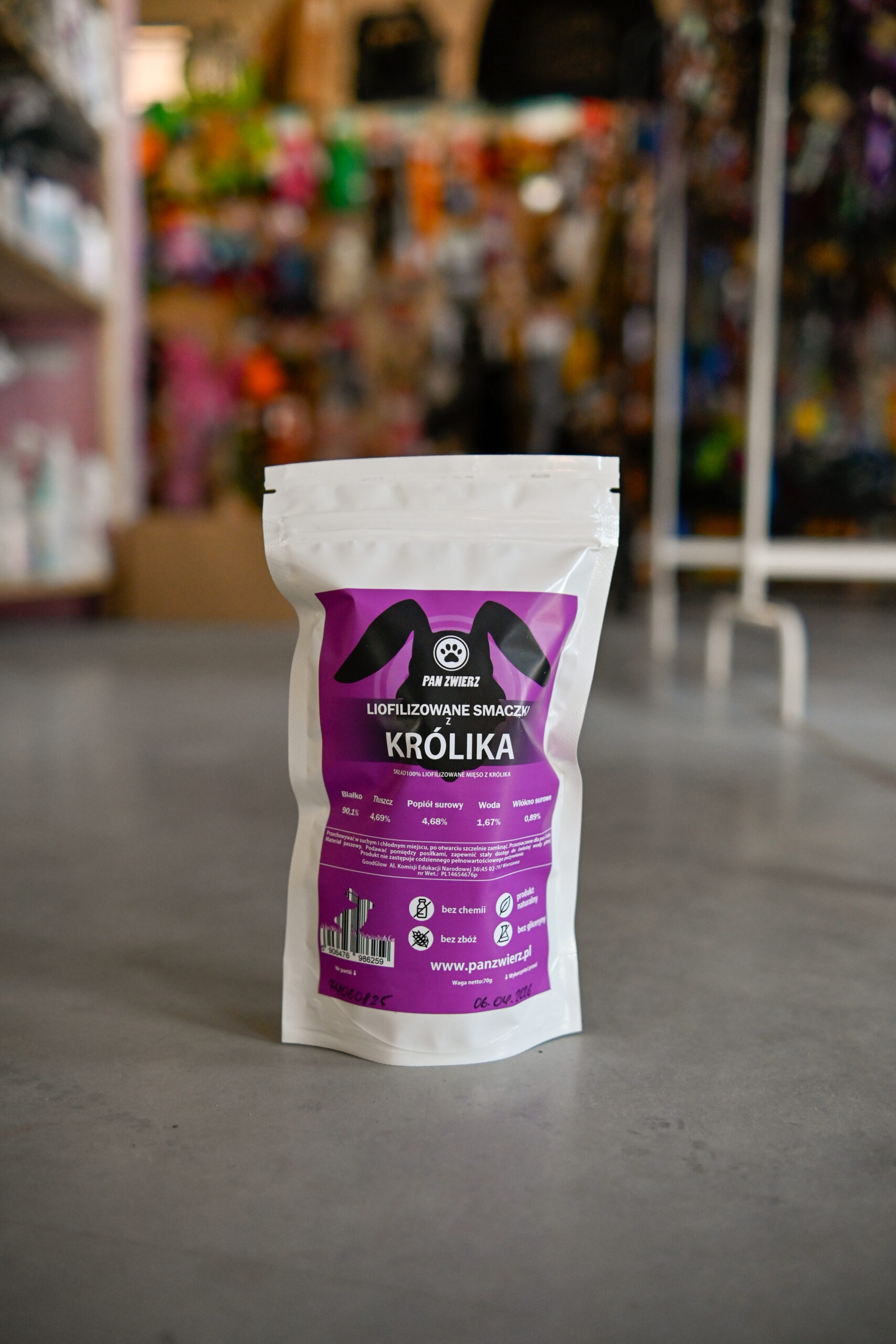 Liofilizowane, ręcznie robione smaczki z królika od PanZwierz to zdrowa i smakowita przekąska stworzona z myślą o najbardziej wymagających psach i kotach. Powstają z czystego, wysokiej jakości mięsa królika, które zostało poddane delikatnemu procesowi liofilizacji – czyli suszenia w niskiej temperaturze. Dzięki temu zachowują maksimum wartości odżywczych, aromat i strukturę świeżego mięsa, a jednocześnie są trwałe i wygodne w użyciu.