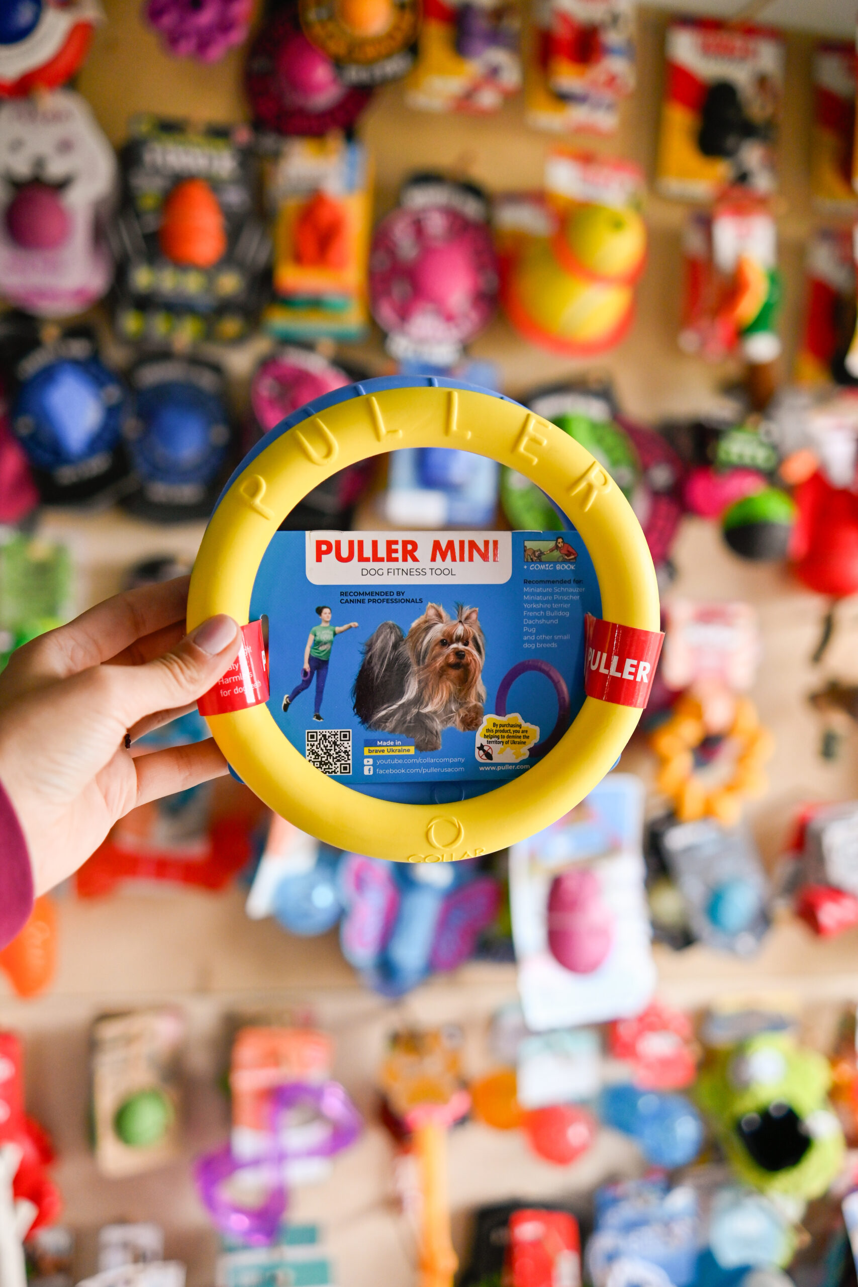 Puller to zestaw 2 ringów (niebieski i żółty) (pierścieni), które skradną serce Twojego psa i tchną nowe życie w Wasze wspólne zabawy. Jeśli dotychczasowe zabawki Twojego psa szybko kończyły swój żywot albo jeszcze szybciej się nudziły to bądź pewien, że z Pullerem będzie inaczej. Puller jest wyjątkowy, co docenili klienci , a przede wszystkim… psy z całego świata.