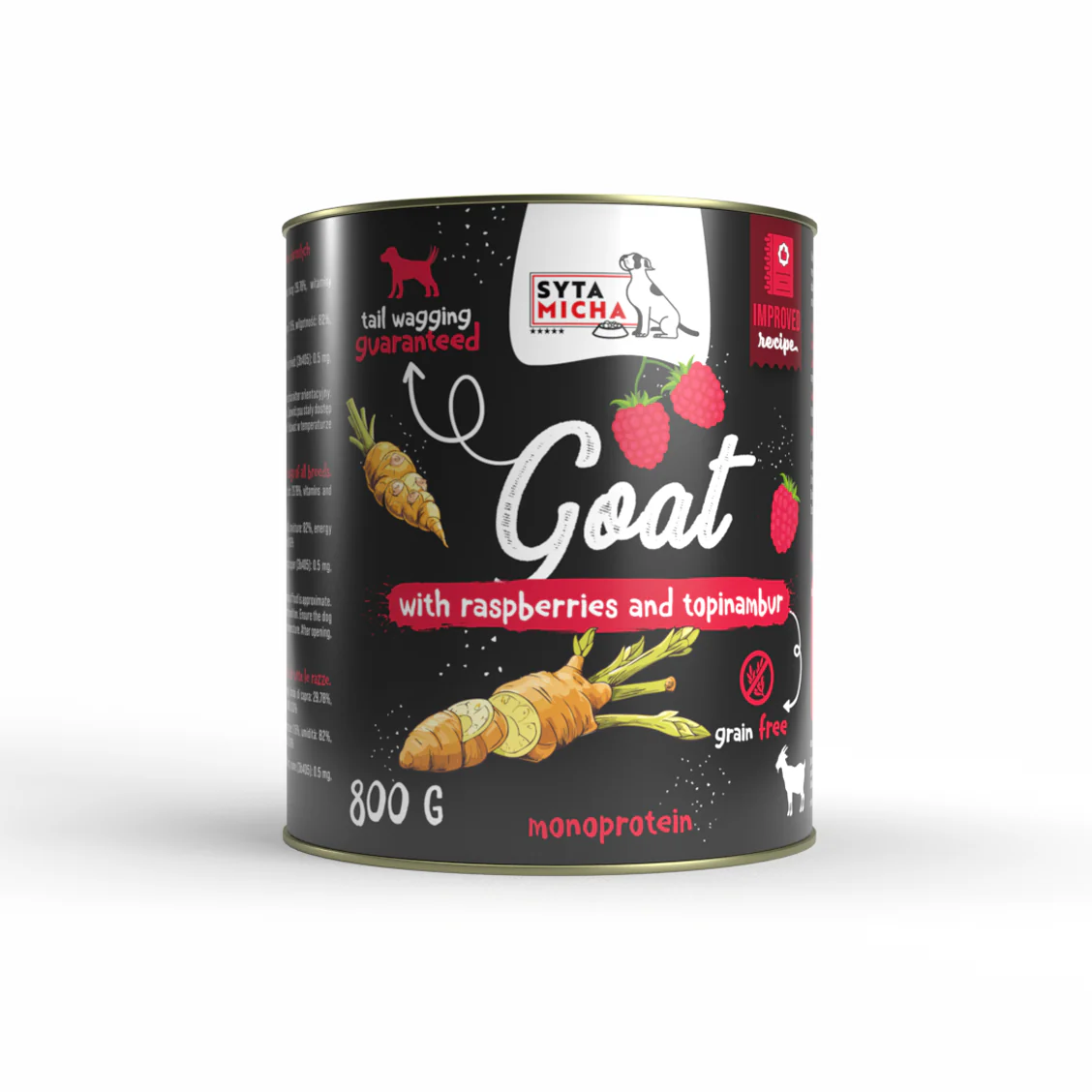 SYTA MICHA Karma mokra dla psa koza z malinami i topinamburem 800g