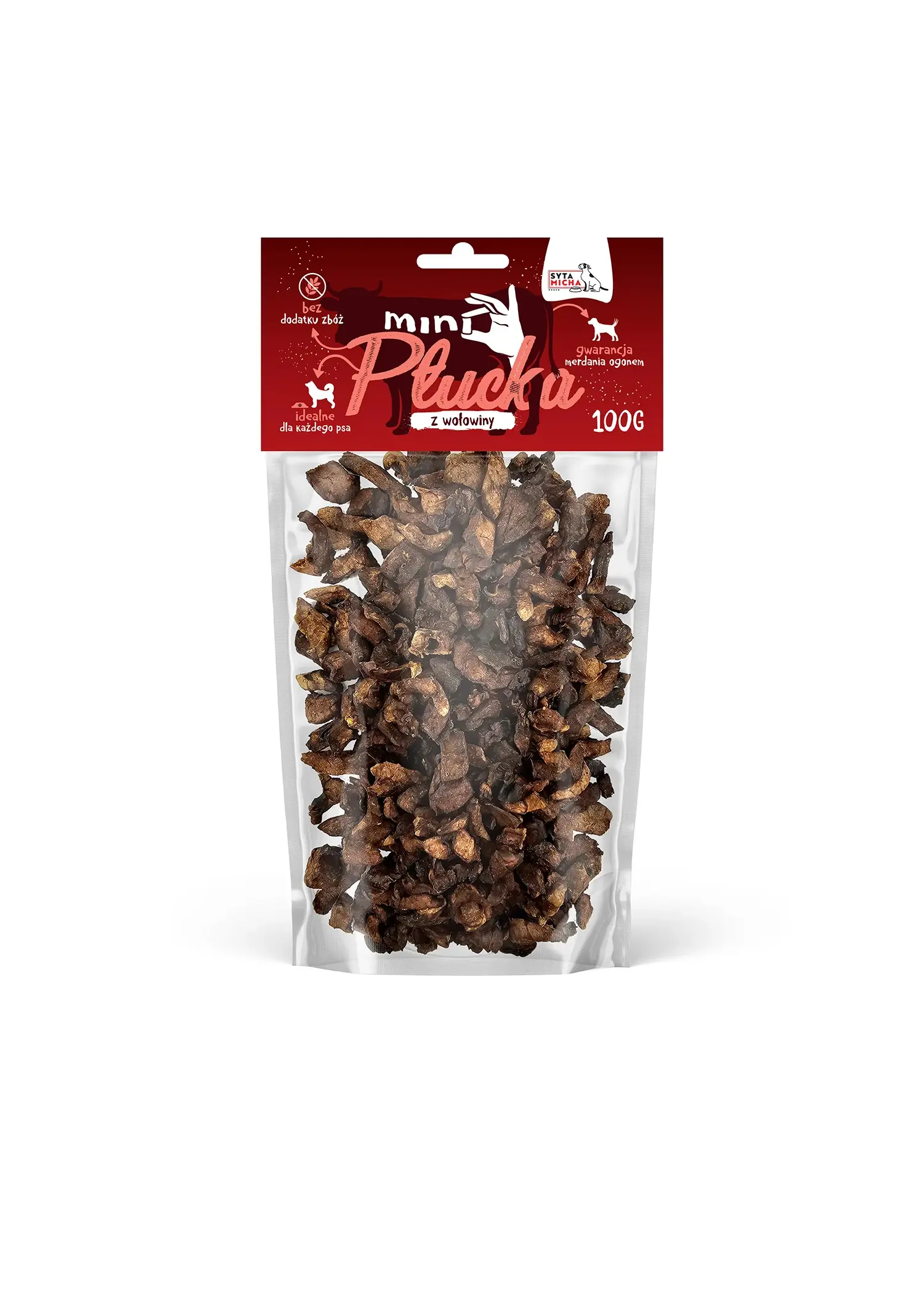 Mini płucka z wołowiny od Sytej Michy to 100% naturalne przysmaki dla psów promujące zdrowie i dobre samopoczucie każdego dnia.